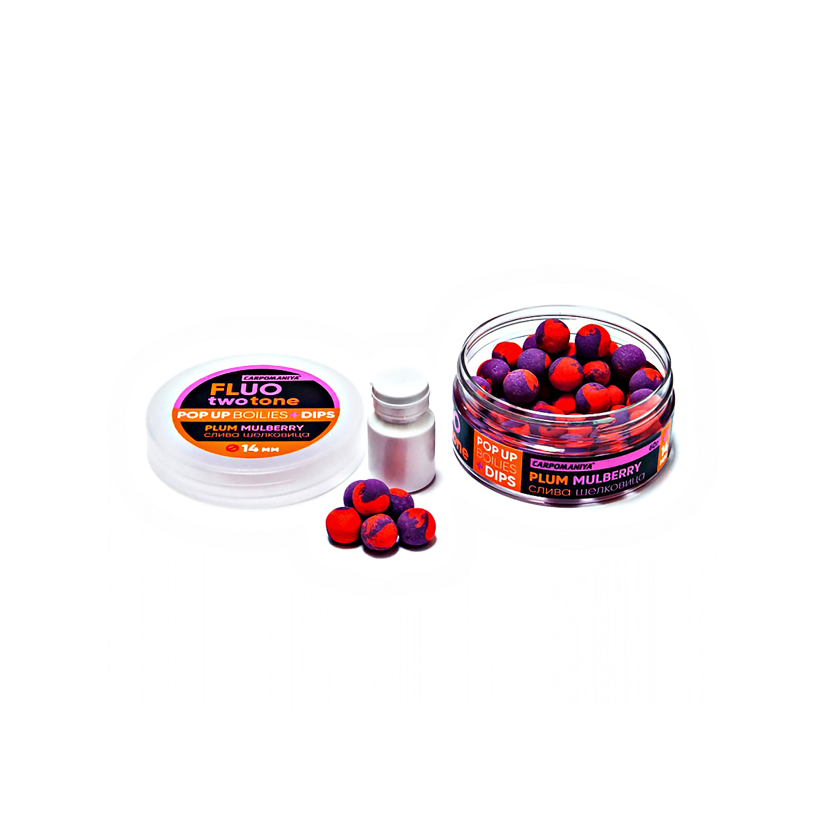 Бойлы Карпомания Pop-Up Fluo Two Tone Dips плавающие 14мм 60гр Слива-Шелковица , в банке