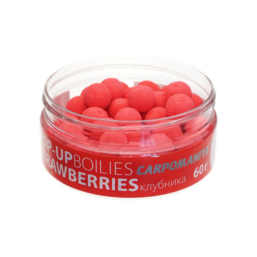 Бойлы Карпомания pop-up насадочные 14мм 60гр Клубника, в банке