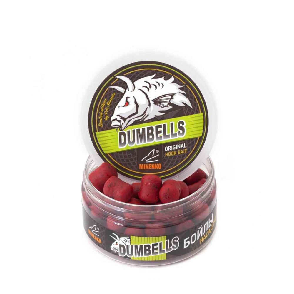 Бойлы Minenko Dumbells 150гр 14х20мм насадочные, вареные, Клубника, в банке
