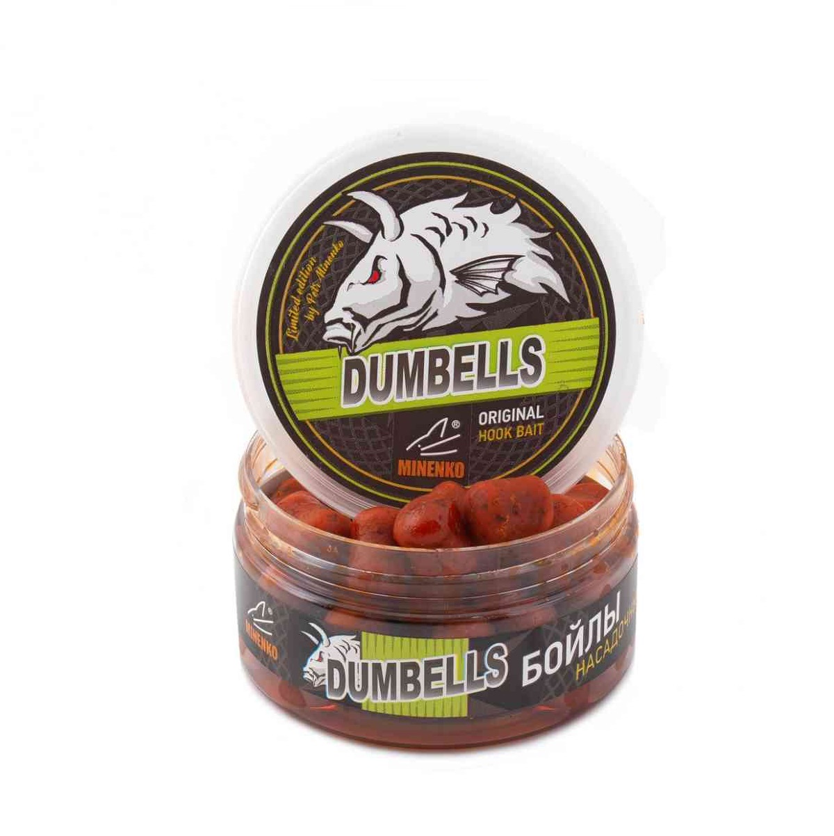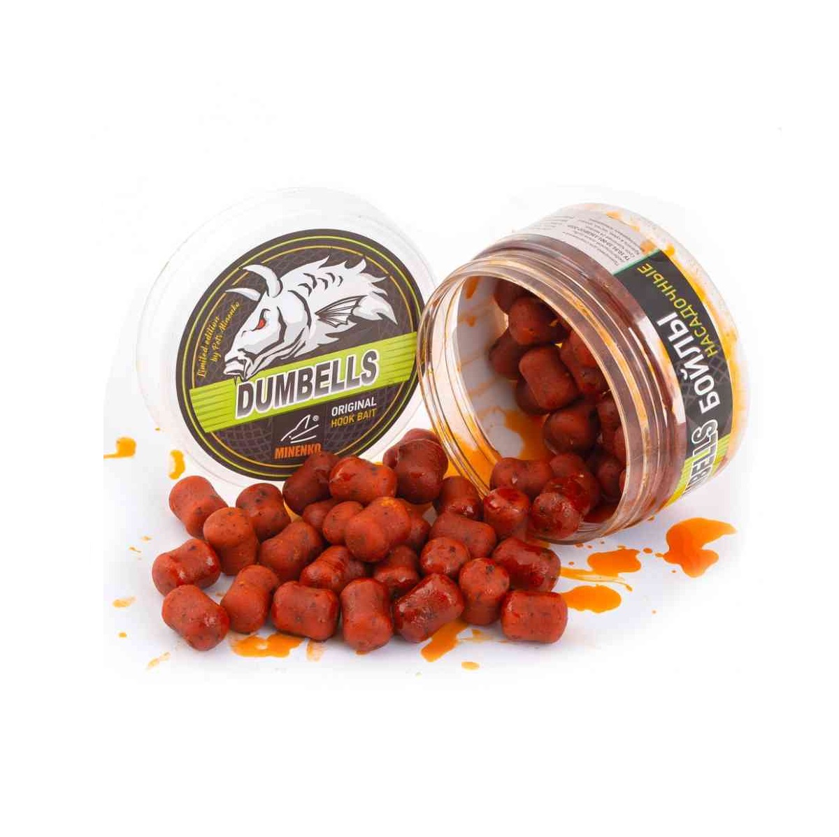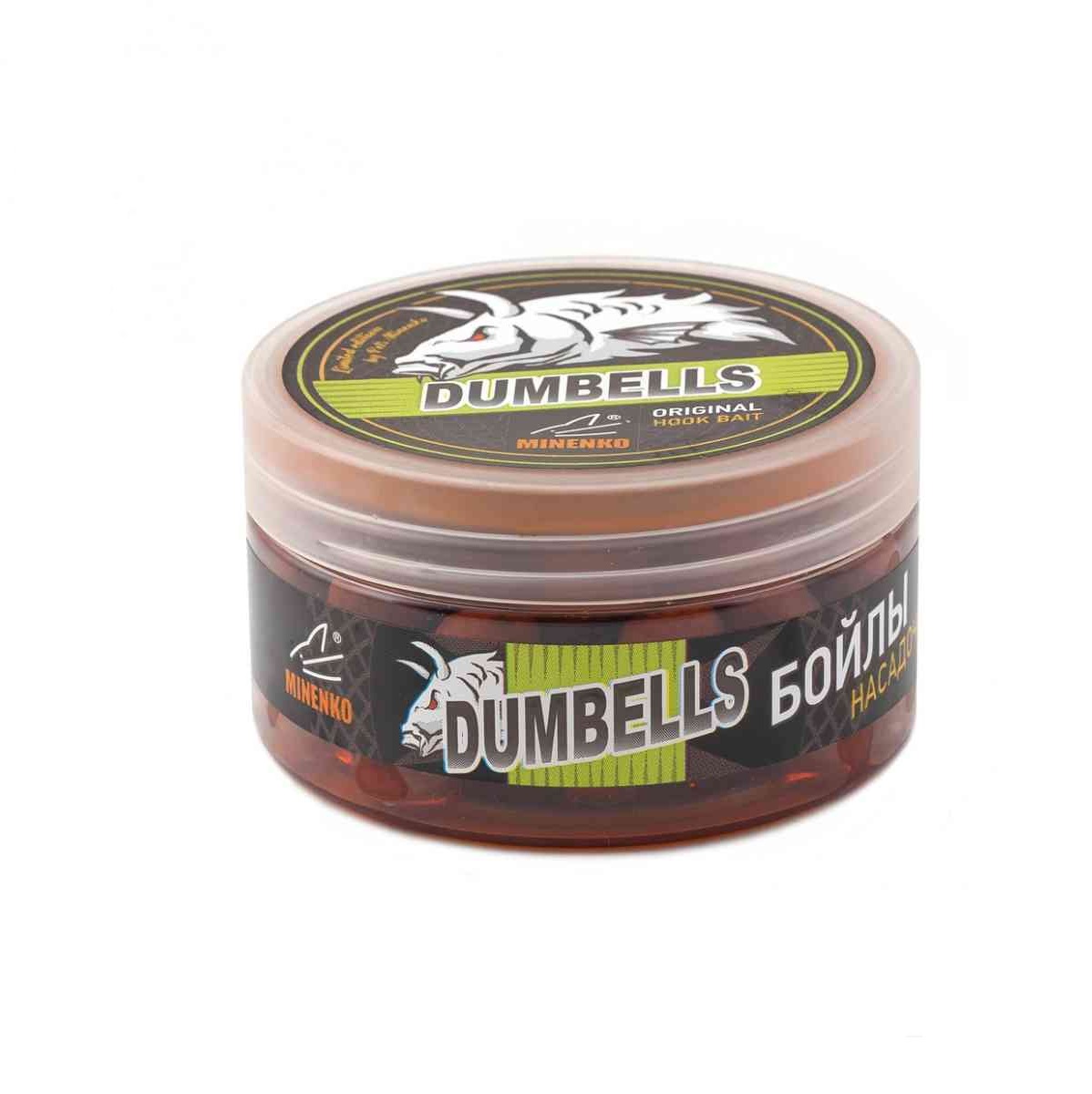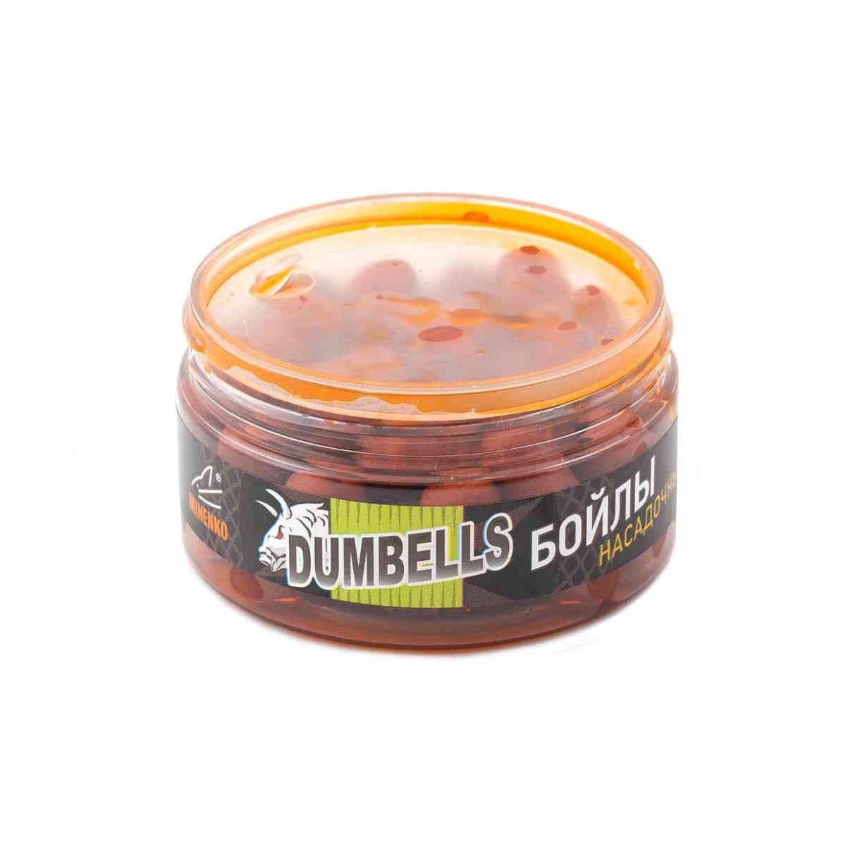 Бойлы Minenko Dumbells насадочные, вареные в дипе 14х20мм 150гр Мандарин, в банке