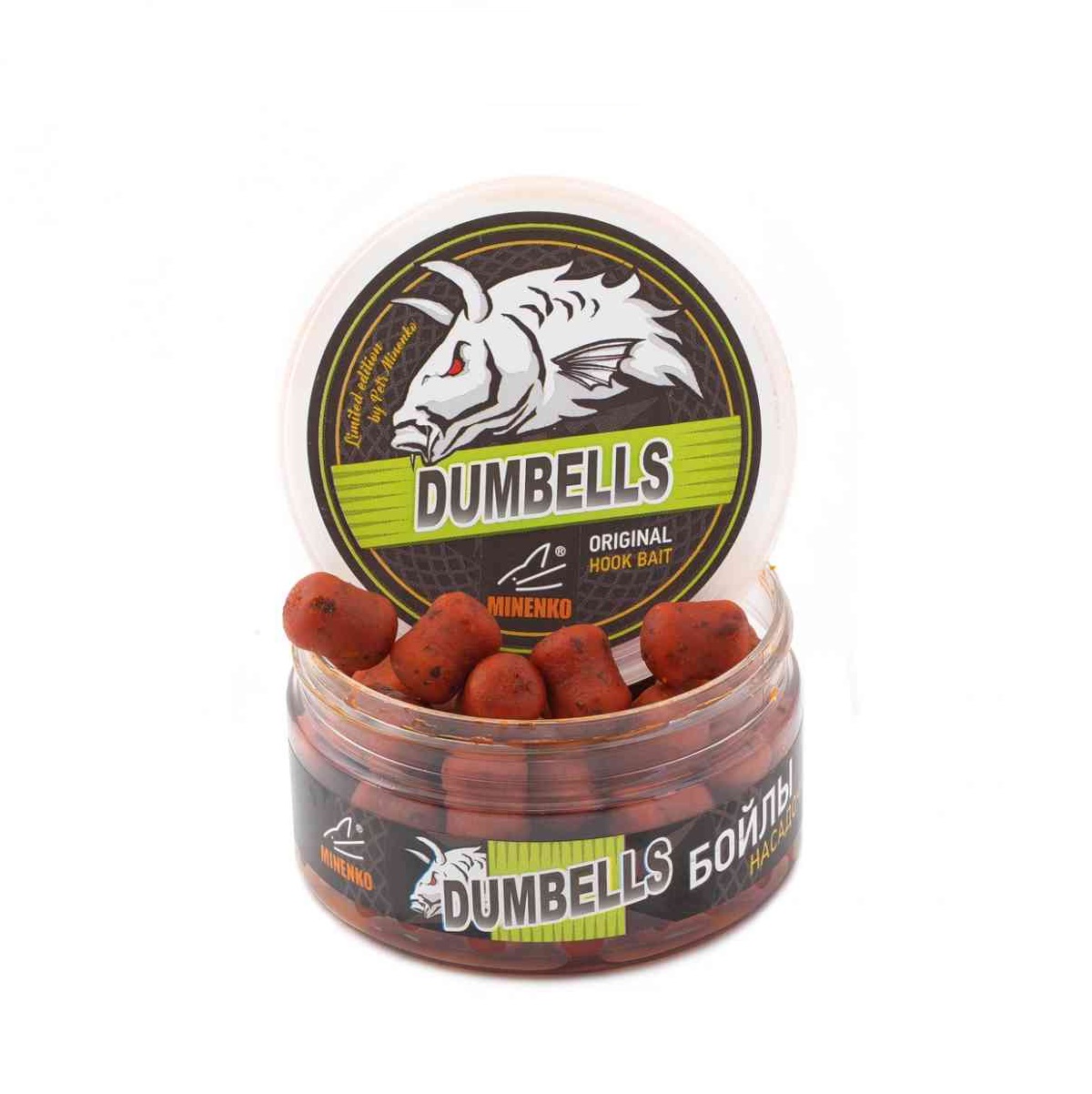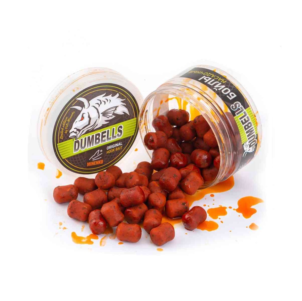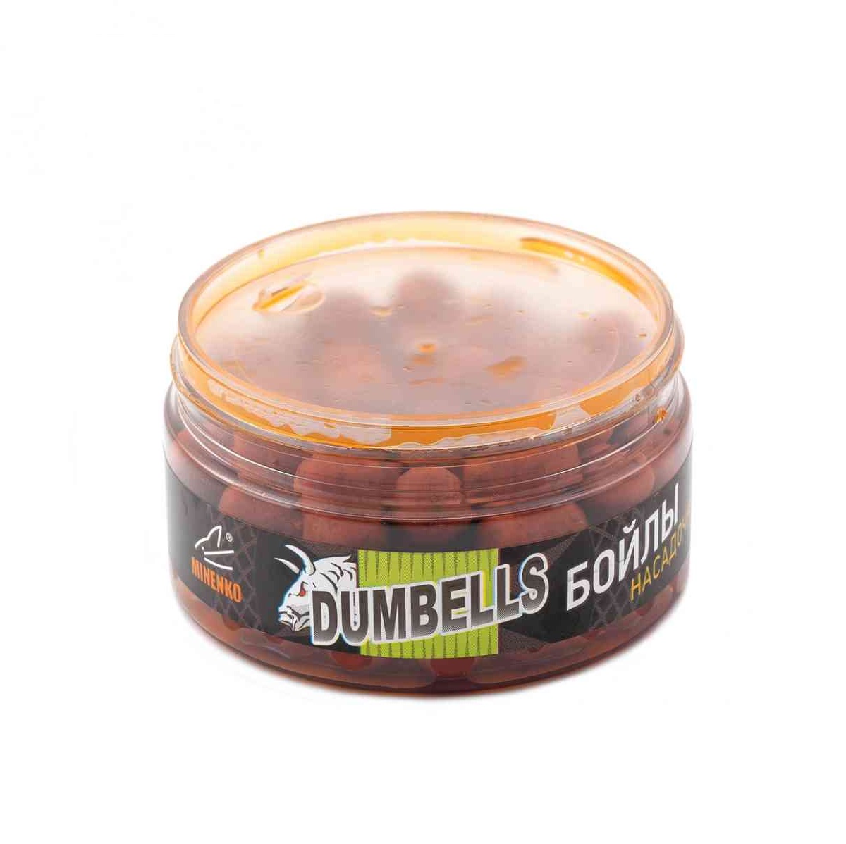 Бойлы Minenko Dumbells насадочные, вареные в дипе 14х20мм 150гр Оранжевая Слива, в банке