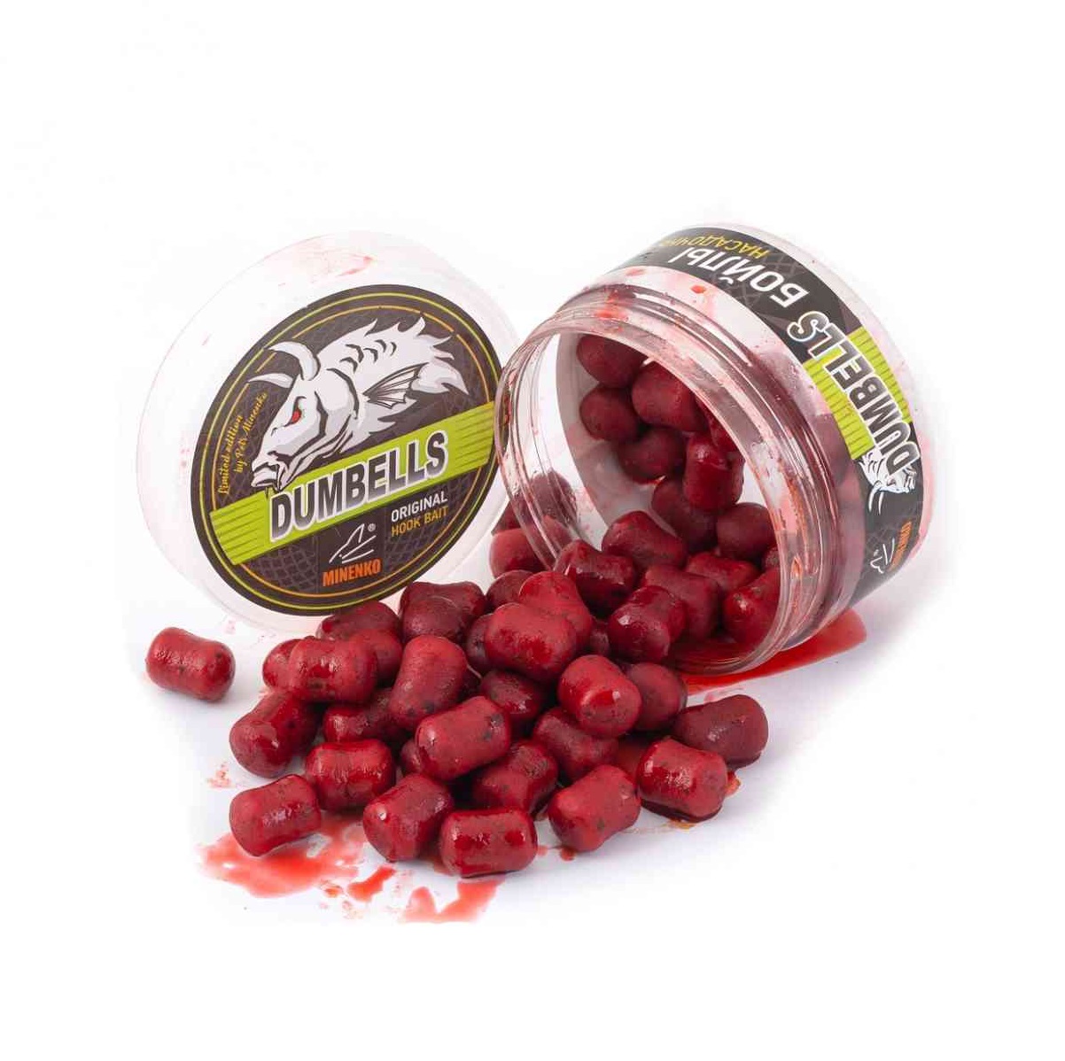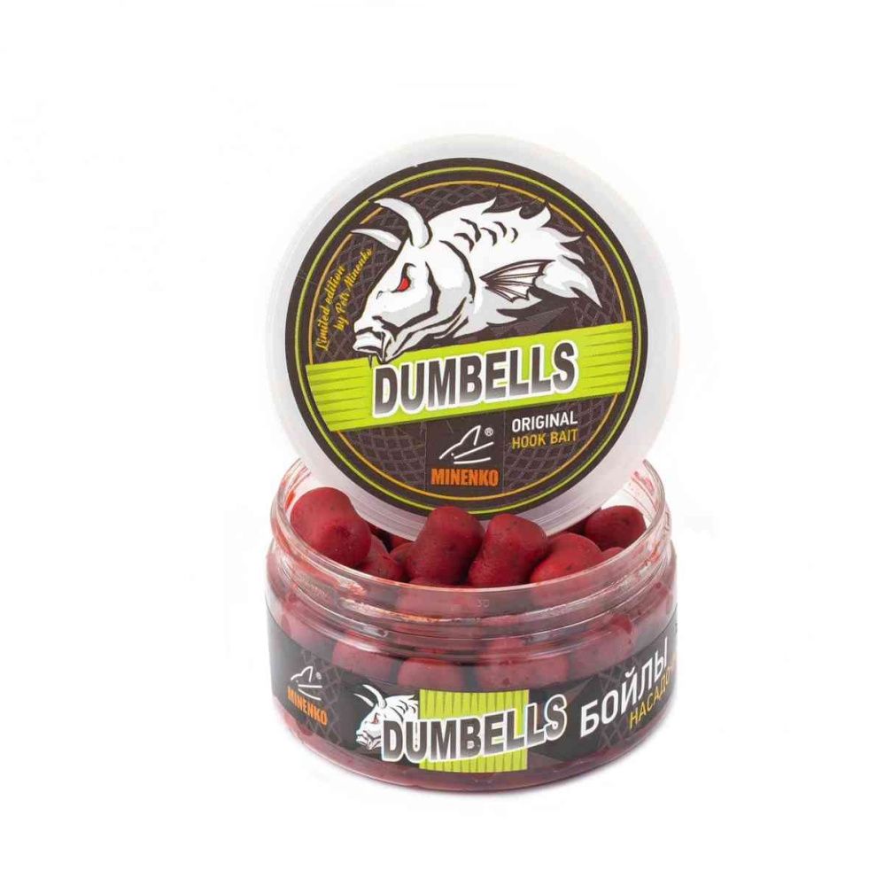 Бойлы Minenko Dumbells насадочные, вареные в дипе 14х20мм 150гр Клубника, в банке