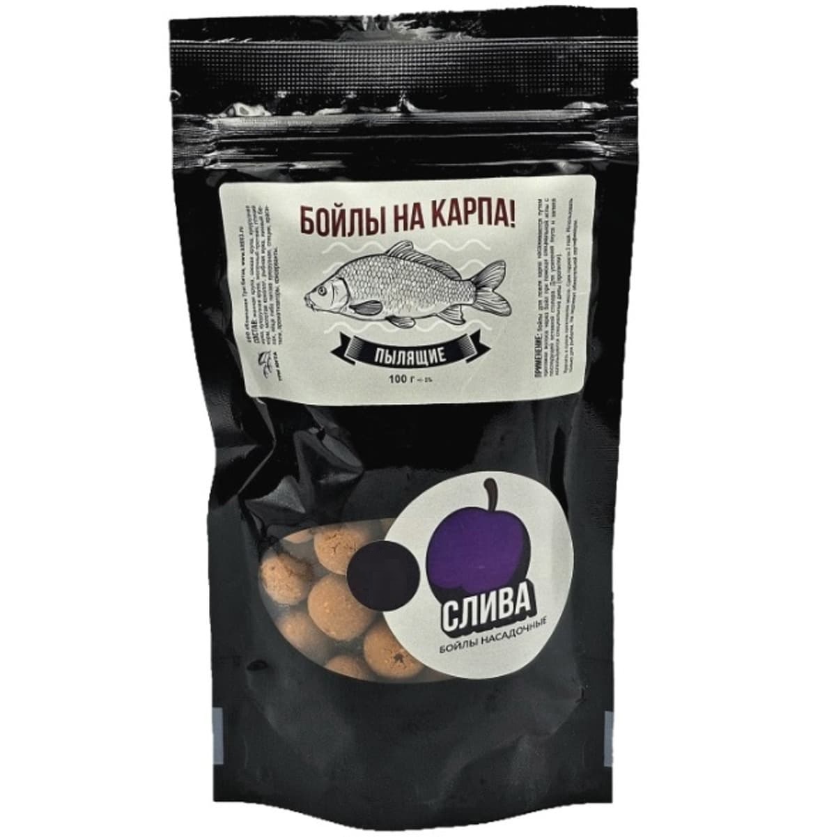 Бойлы пылящие На Карпа! 14мм 100гр Слива, в пакете