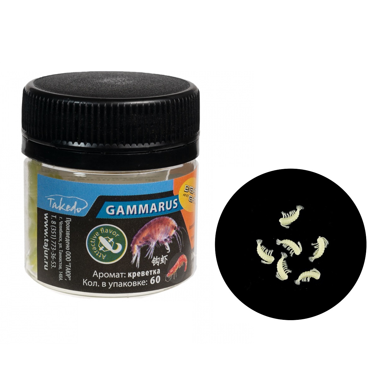 Мормыш Takedo искусственный TKSA2900M500L0070260 съедобный 7мм фосфорный, светонакопительный, креветка (60шт)