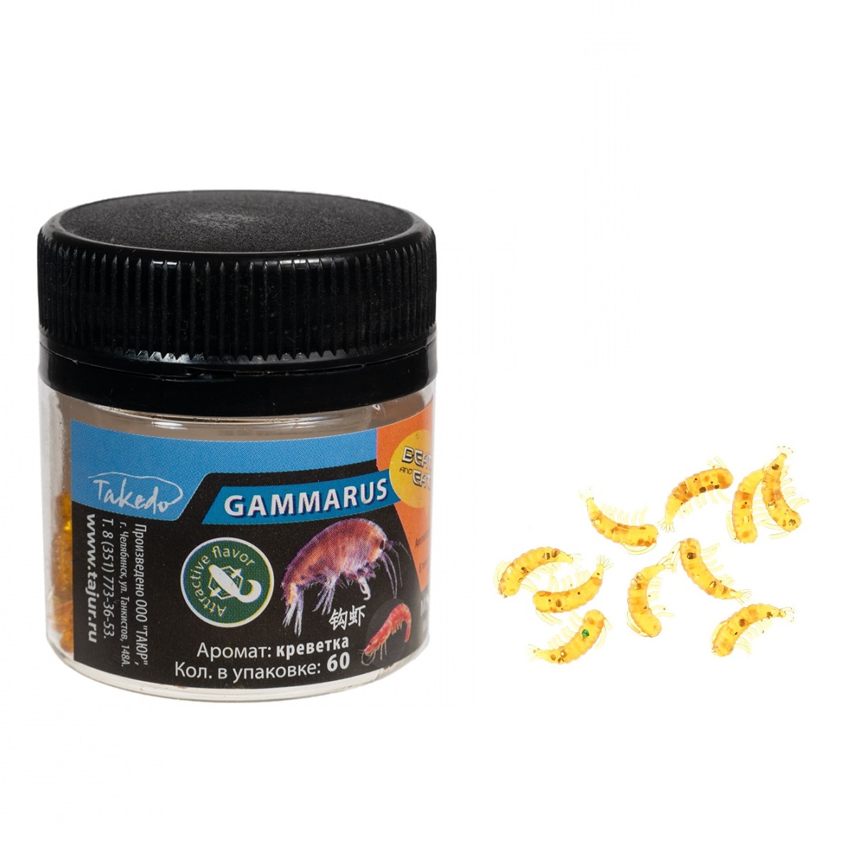 Мормыш Takedo искусственный TKSA2900M800GT0070260 съедобный 7мм желтый с блестками, креветка (60шт)