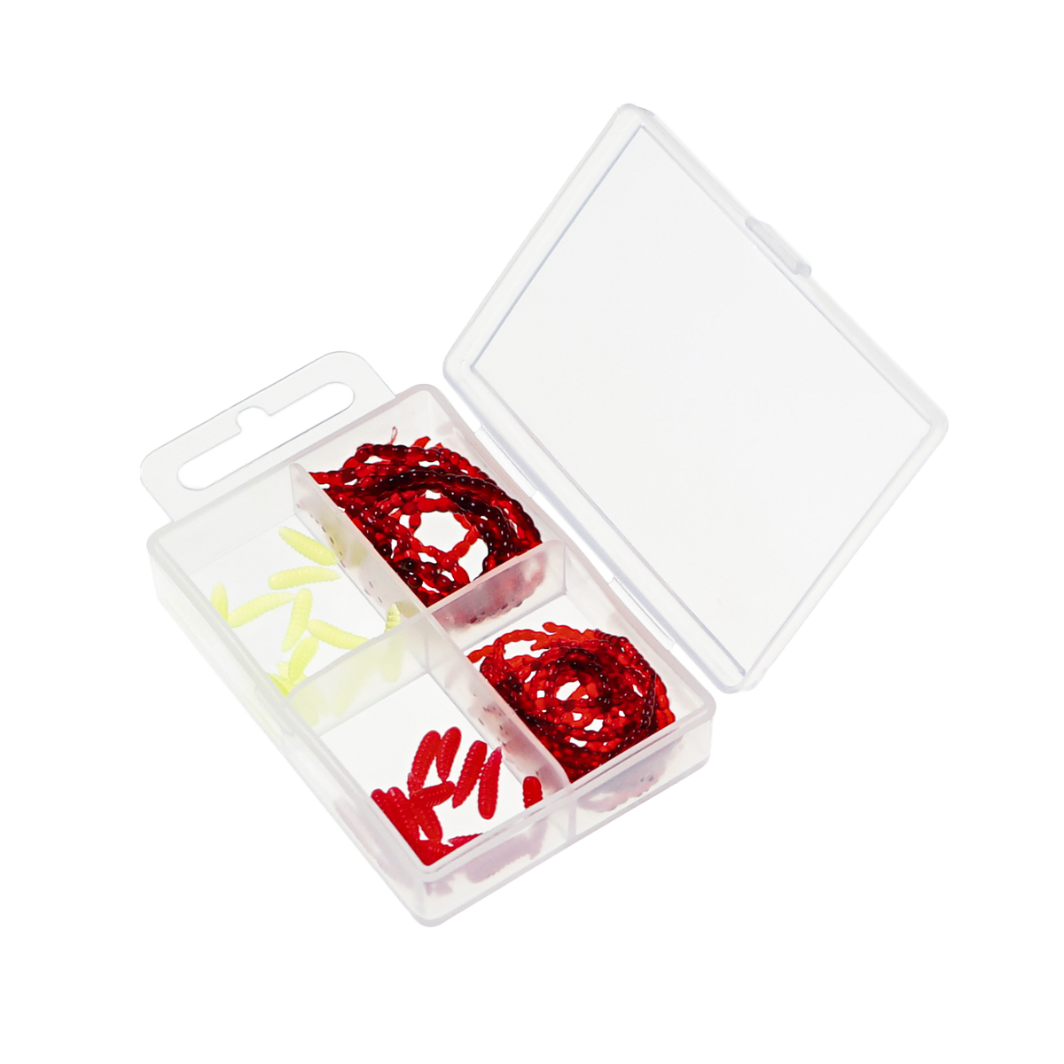 При вынужденной отмене зимней рыбалки искусственные наживки остаются свежими и пригодными для следующего выезда. Удобная упаковка включает две разновидности размеров мотыля и два варианта окраски опарышей диаметром 12 мм, обеспечивая универсальное решение для любых условий ловли.