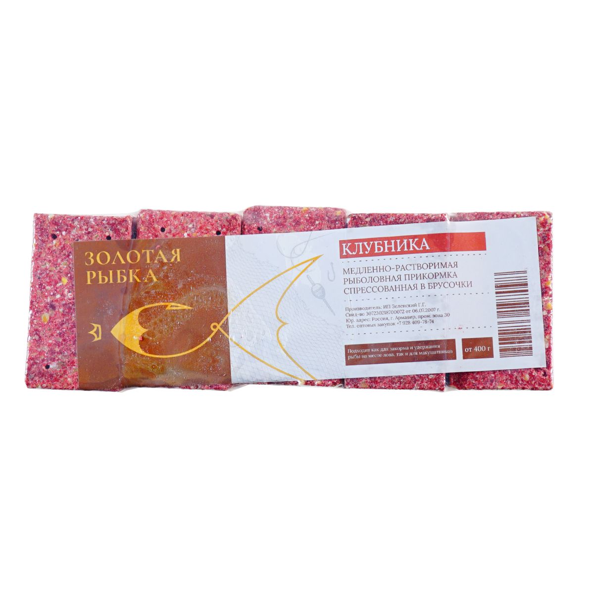 Прикормка Золотая Рыбка медленнорастворимая 420гр Клубника, в кубиках