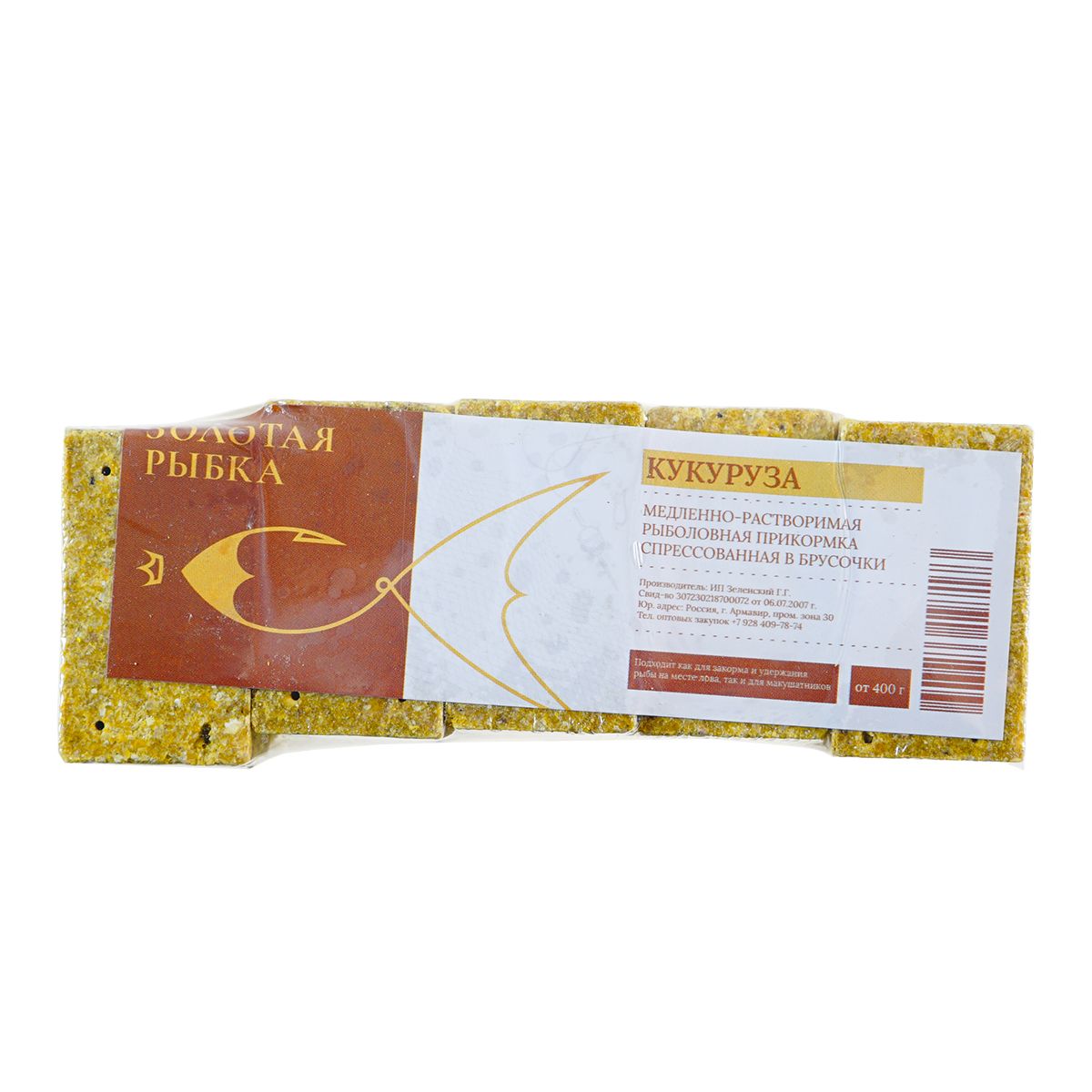 Прикормка Золотая Рыбка медленнорастворимая 420гр с Кукурузой, в кубиках