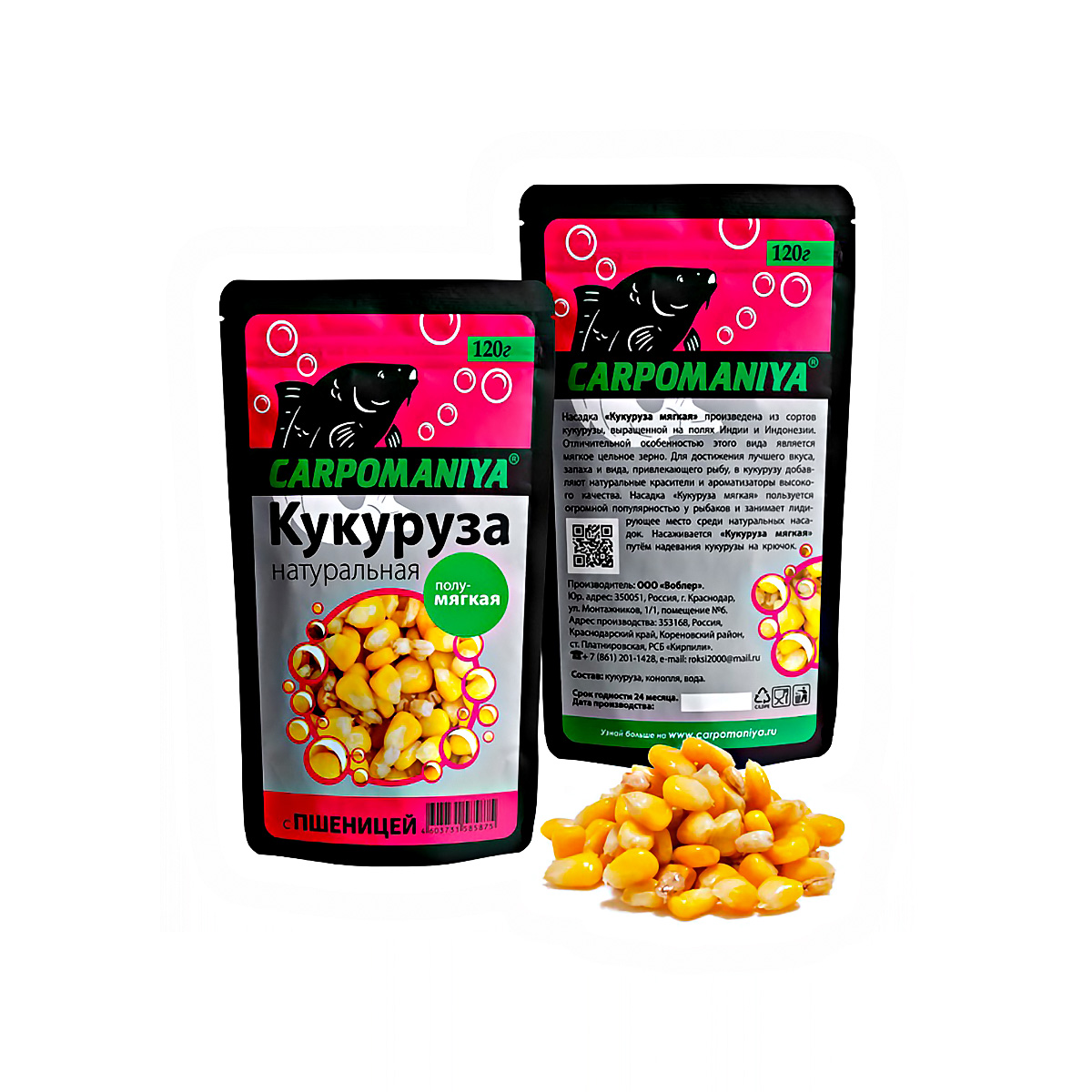 Насадка Кукуруза Карпомания цельная, полумягкая 120гр с Пшеницей, в пакете