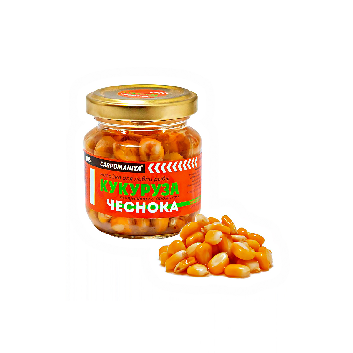 Насадка Кукуруза Карпомания цельная, полумягкая 105гр Чеснок, в банке