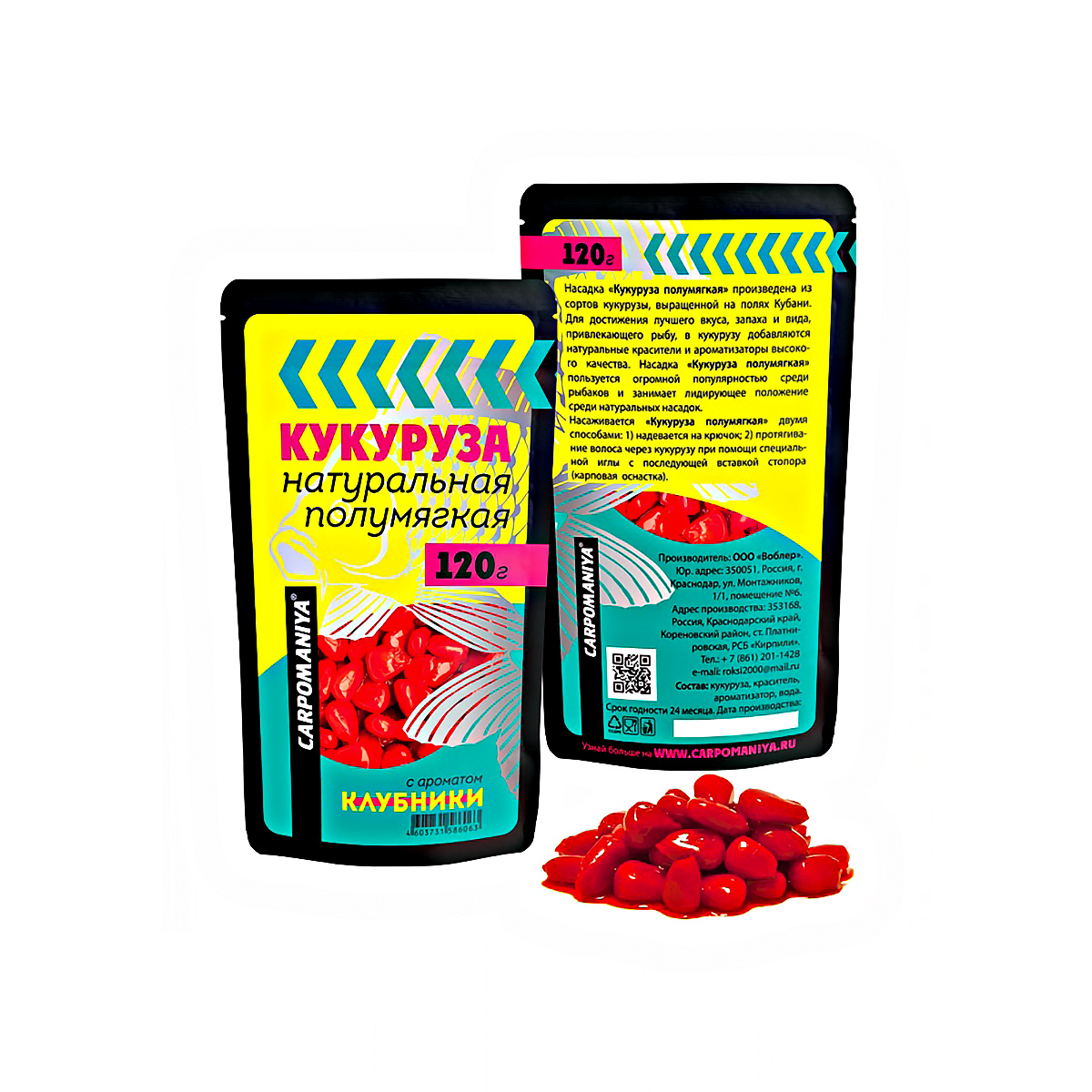 Насадка Кукуруза Карпомания цельная, полумягкая 120гр Клубника, в пакете