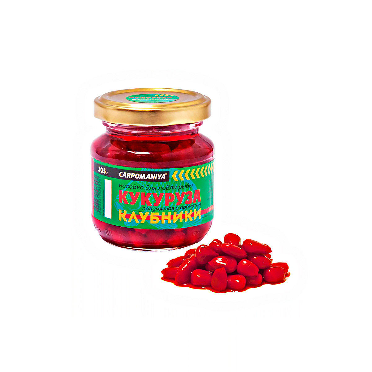 Насадка Кукуруза Карпомания цельная, полумягкая 105гр Клубника, красная, в банке