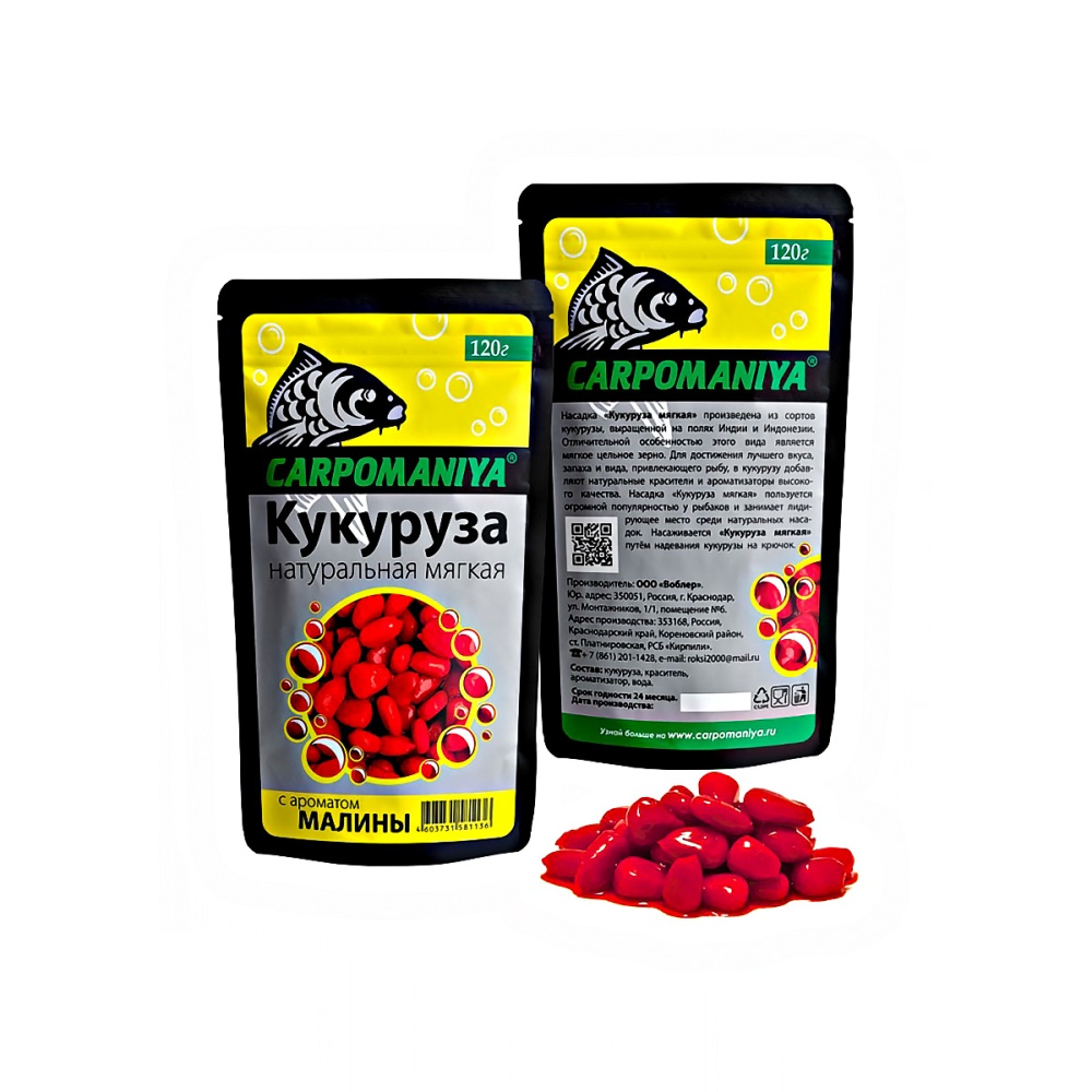 Насадка Кукуруза Карпомания цельная, мягкая 120гр Малина, в пакете