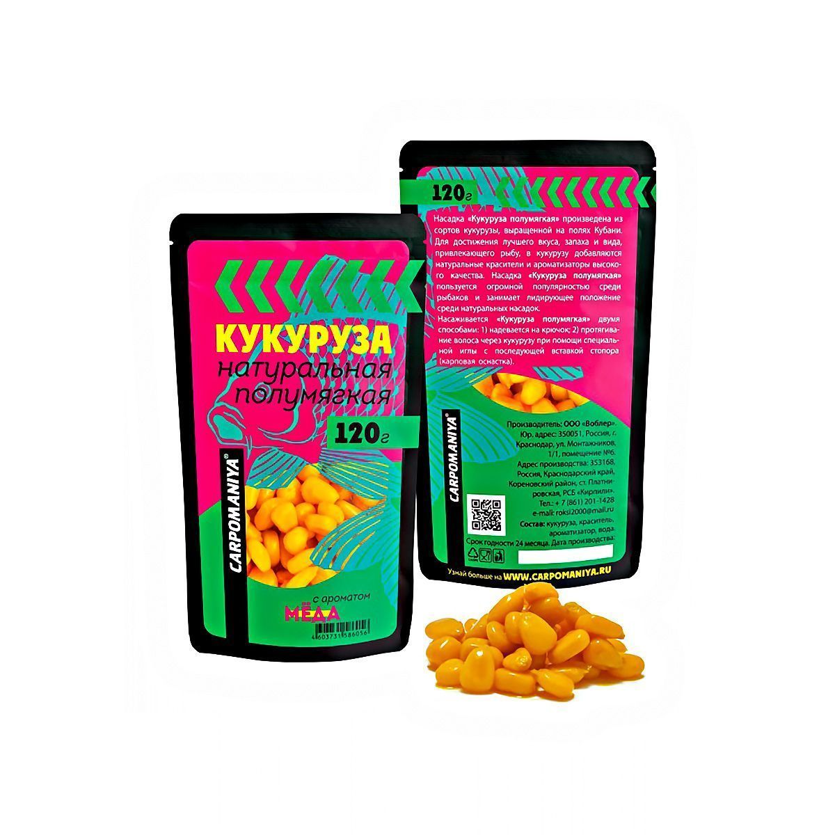 Насадка Кукуруза Карпомания цельная, полумягкая 120гр Мед, в пакете