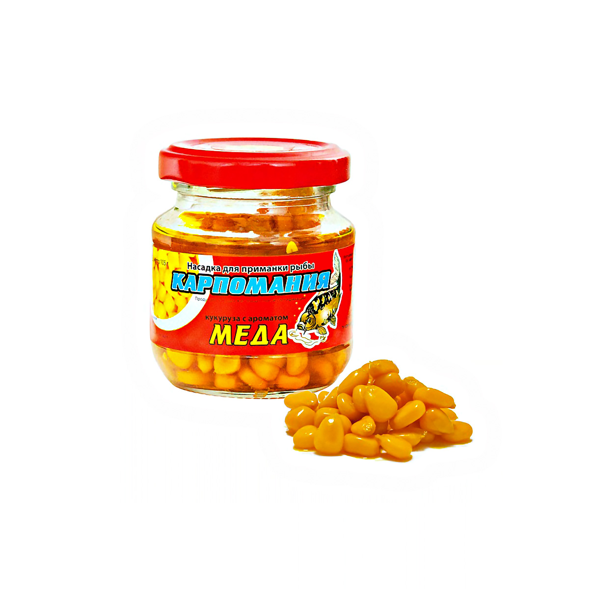 Насадка Кукуруза Карпомания цельная, мягкая 105гр Мед, желтая, в банке