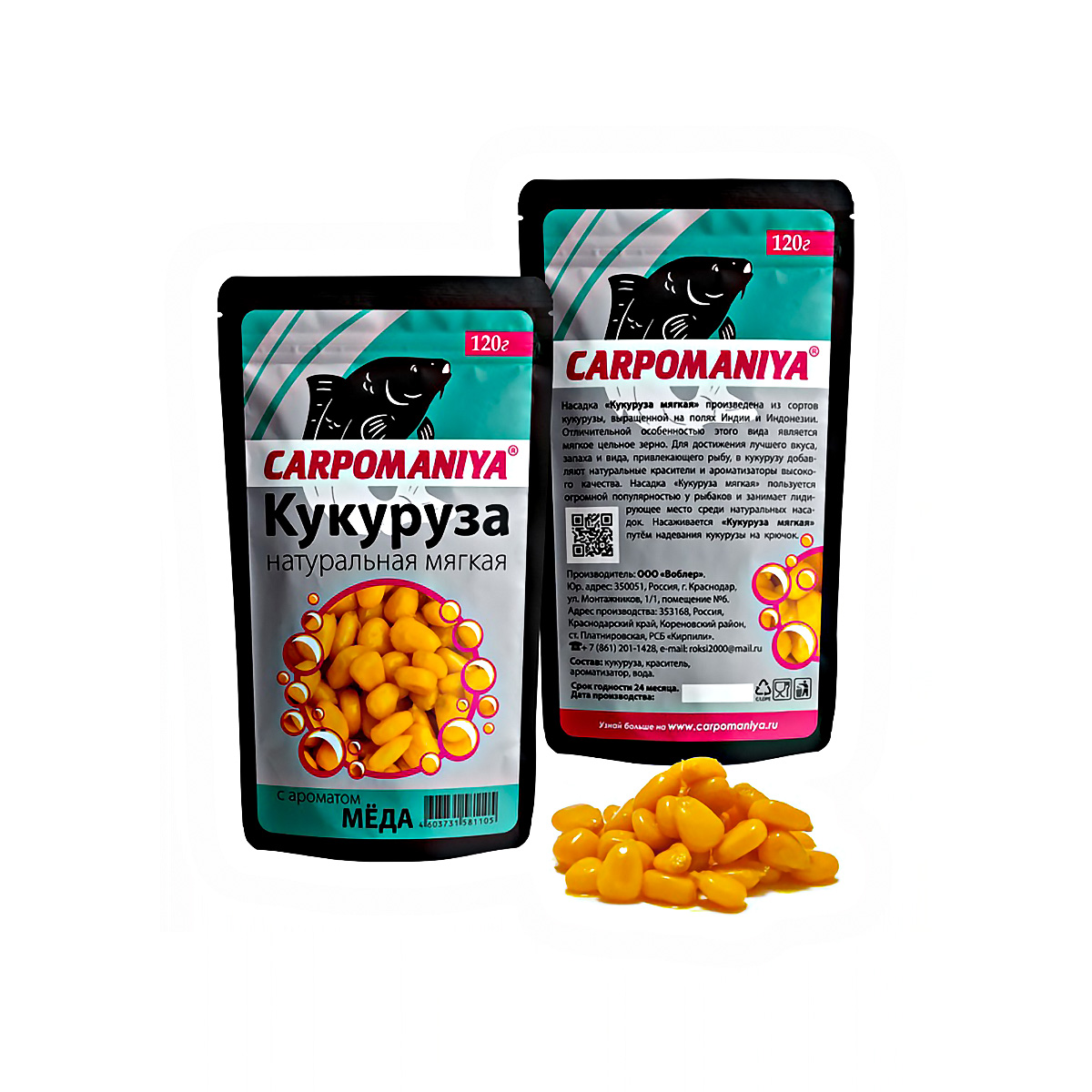 Насадка Кукуруза Карпомания цельная, мягкая 120гр Мед, в пакете