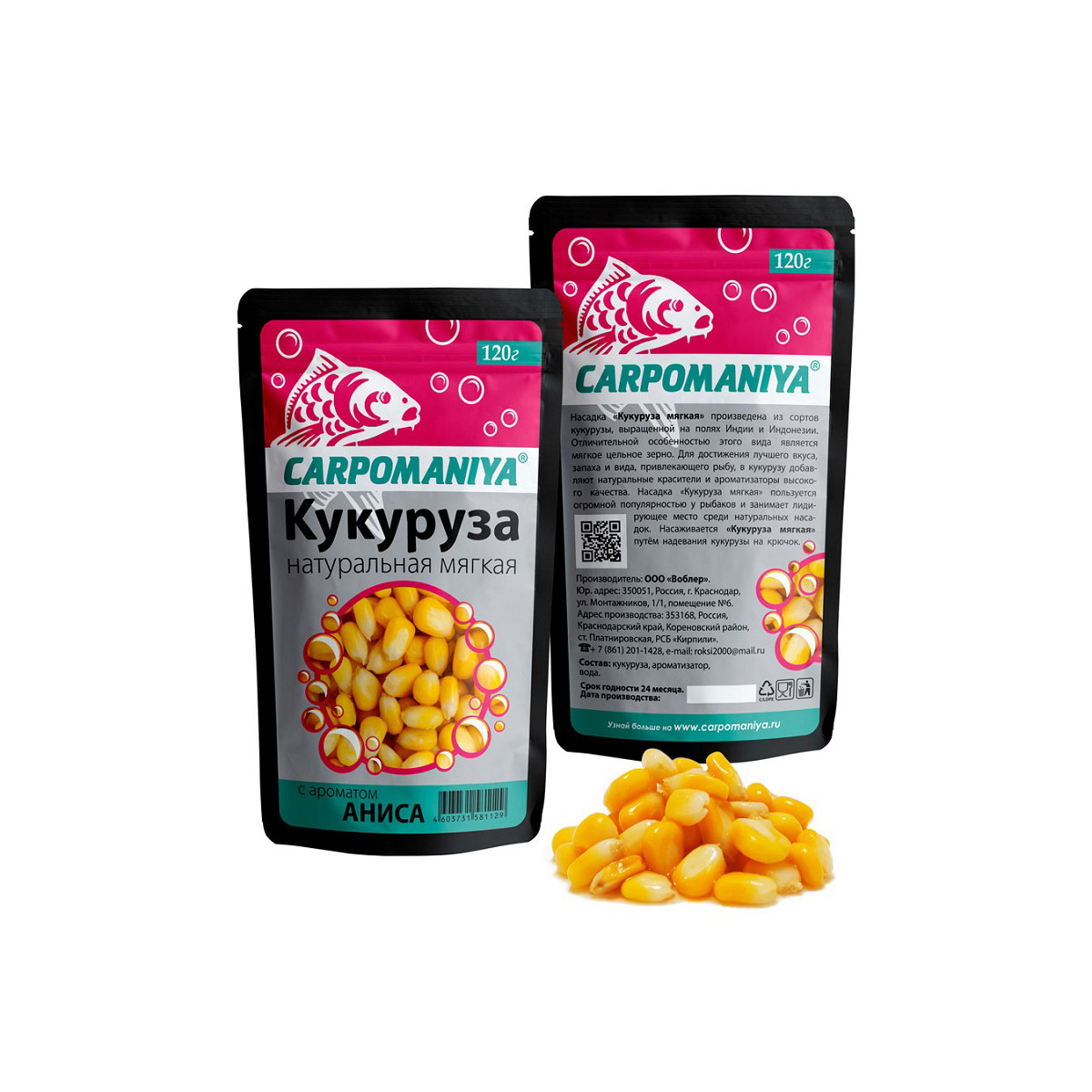 Насадка Кукуруза Карпомания цельная, мягкая 120гр Кукуруза-Анис, в пакете