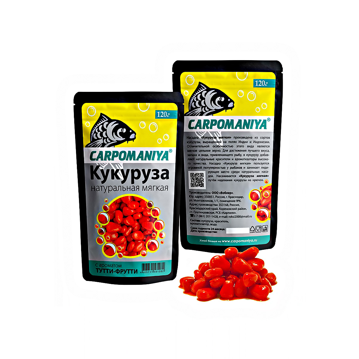 Насадка Кукуруза Карпомания цельная, мягкая 120гр Тутти-Фрутти, в пакете