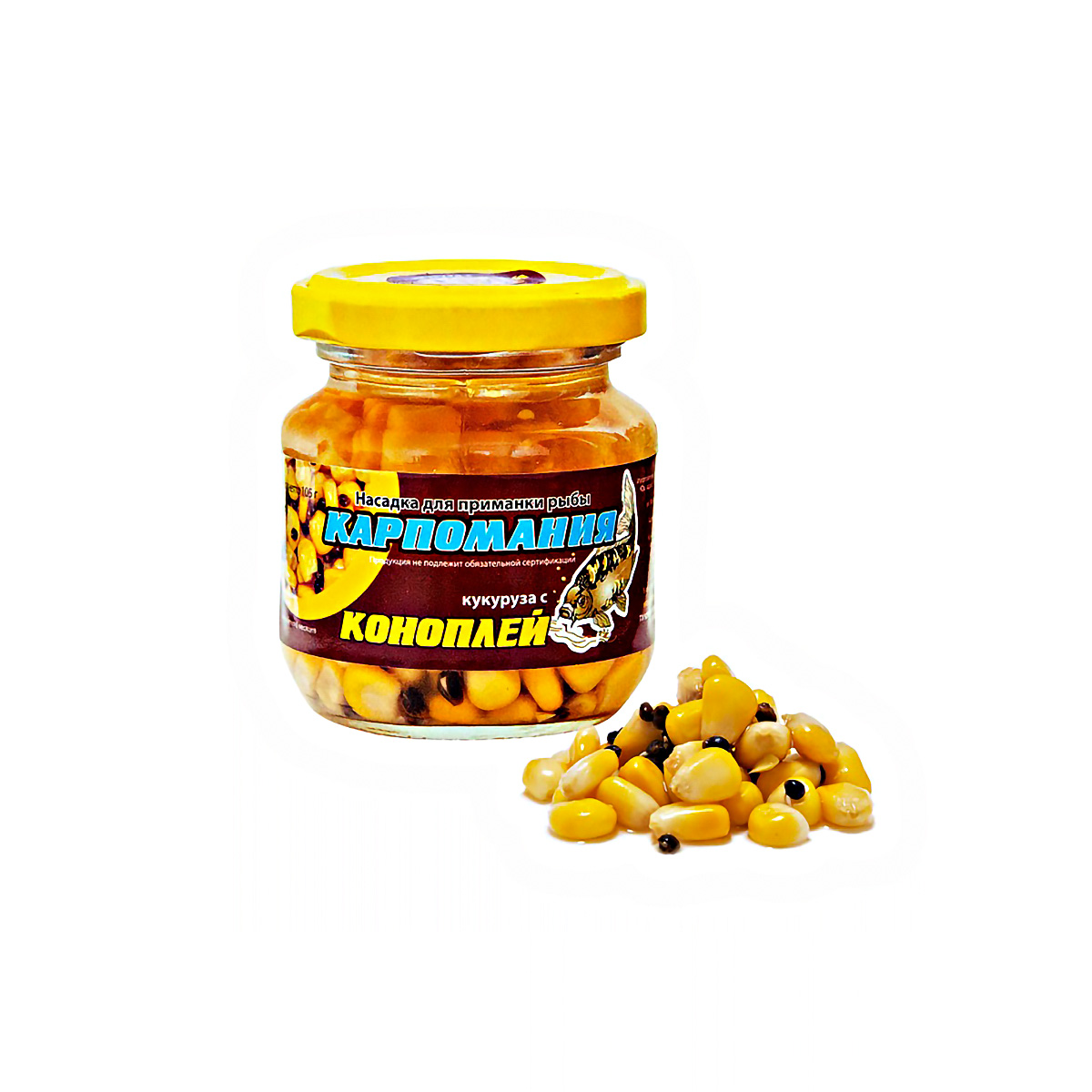 Насадка Кукуруза Карпомания цельная, мягкая 105гр с Коноплей, в банке