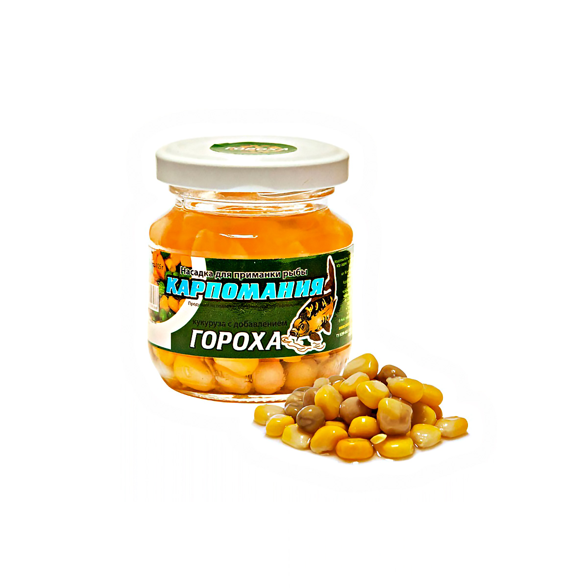 Насадка Кукуруза Карпомания цельная, мягкая 105гр с Горохом, в банке