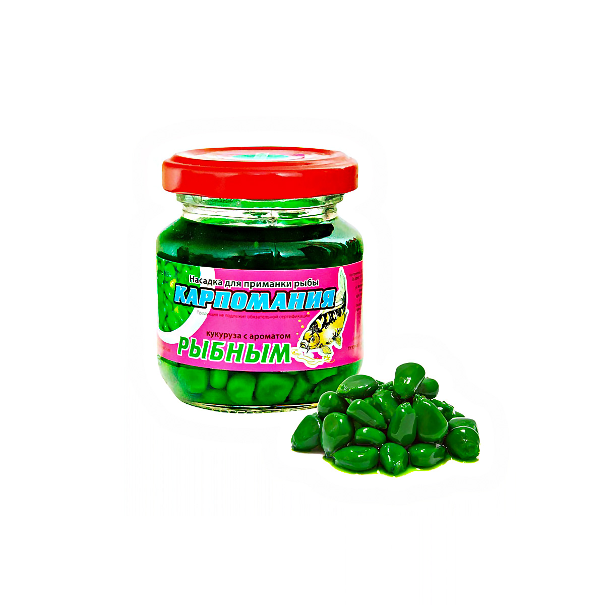 Насадка Кукуруза Карпомания цельная, мягкая 105гр Рыба, зеленая, в банке