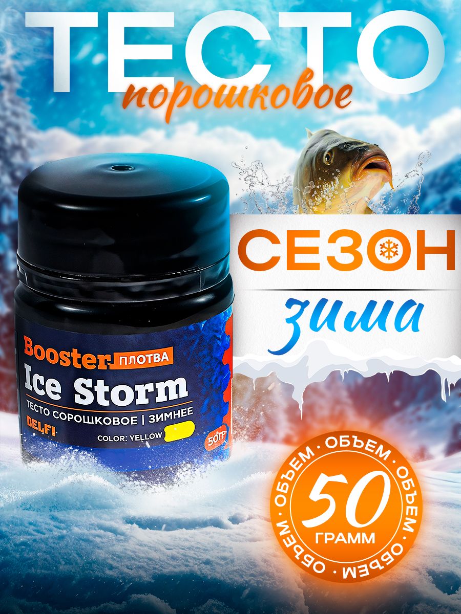 Тесто зимнее Delfi Ice Storm Booster сухое 50гр Плотва, желтое