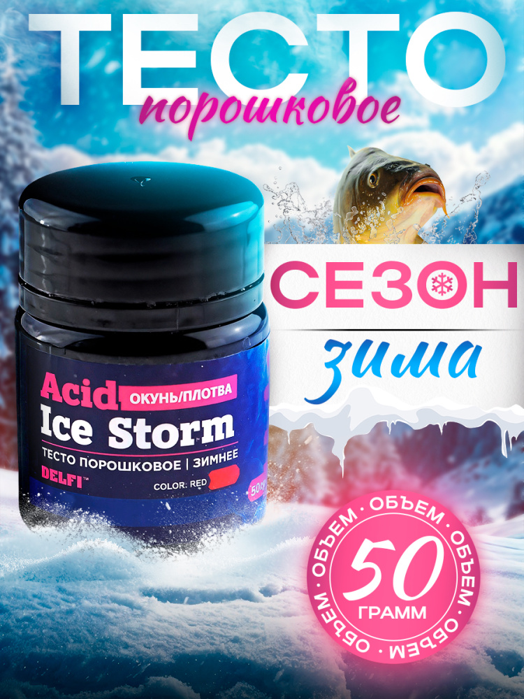 Тесто зимнее Delfi Ice Storm Acid сухое 50гр Окунь-Плотва, красное
