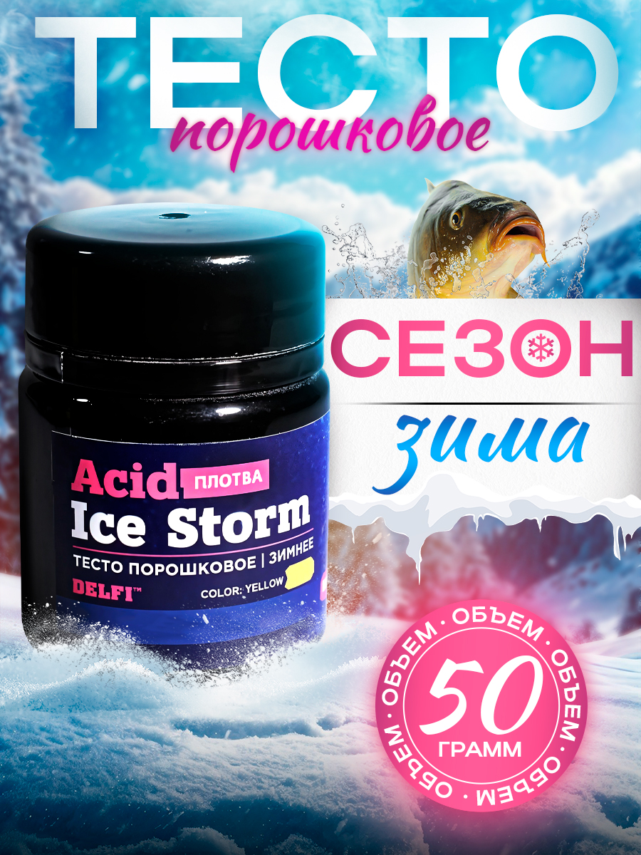 Тесто зимнее Delfi Ice Storm Acid сухое 50гр Плотва, желтое