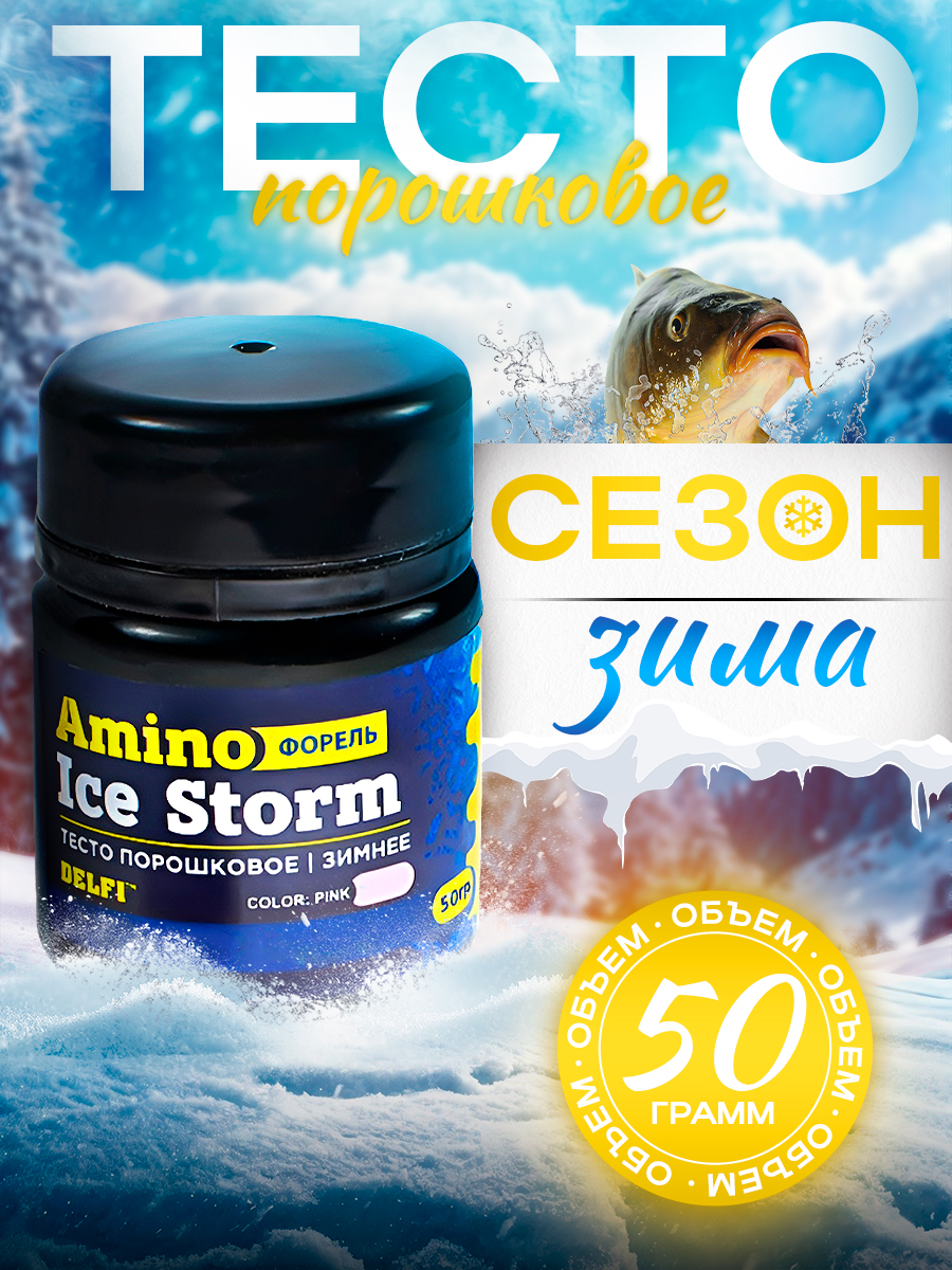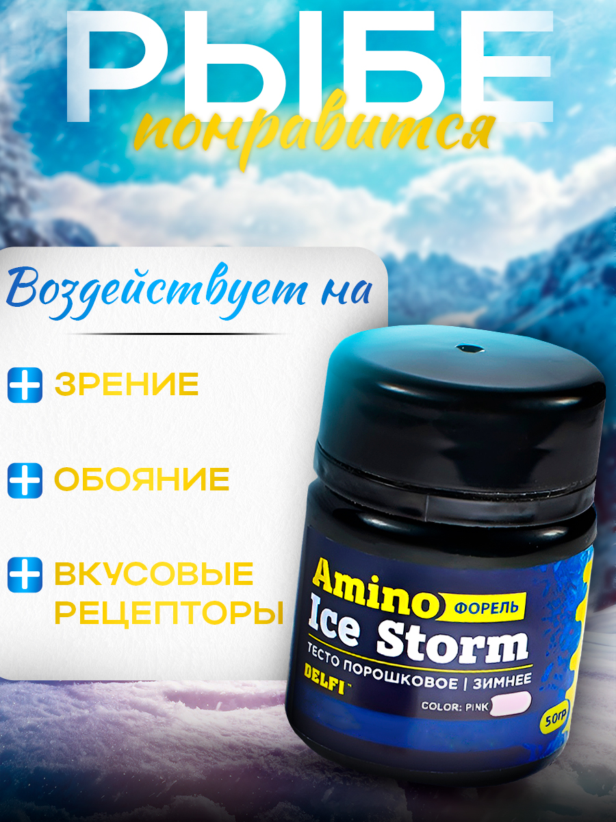 Тесто зимнее Delfi Ice Storm Amino сухое 50гр Форель, розовое с блестками