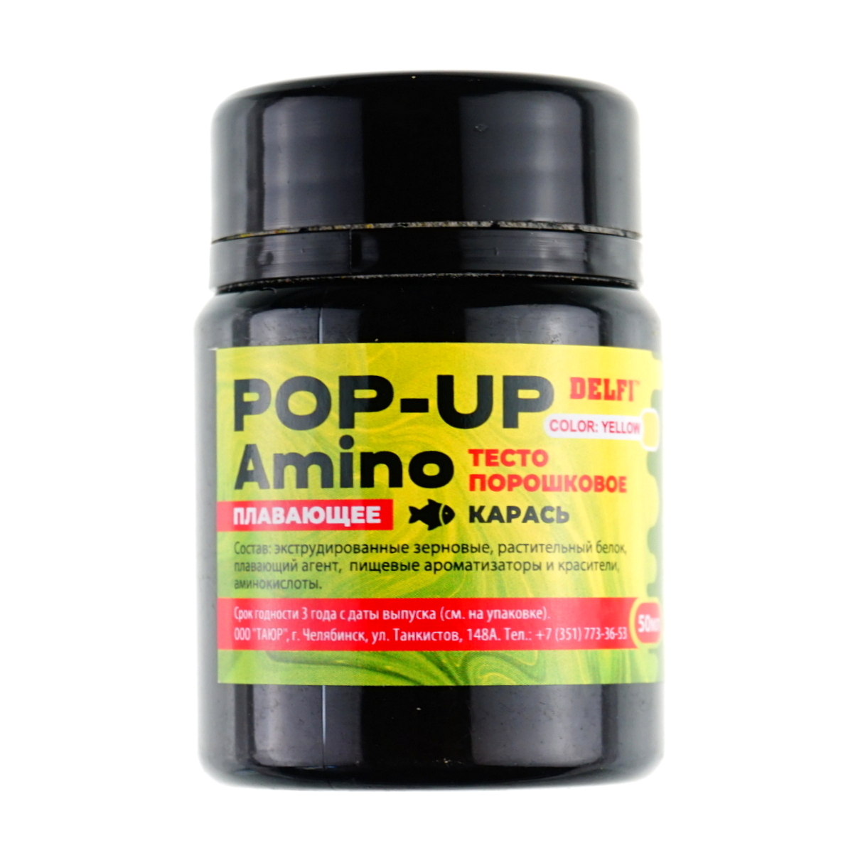Тесто Delfi Pop-up Amino плавающее, сухое 50мл Карась, желтое