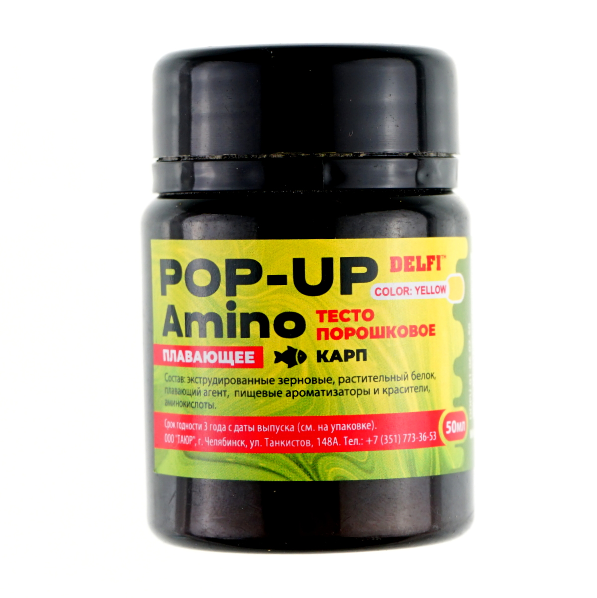 Тесто Delfi Pop-up Amino плавающее, сухое 50мл Карп, желтое