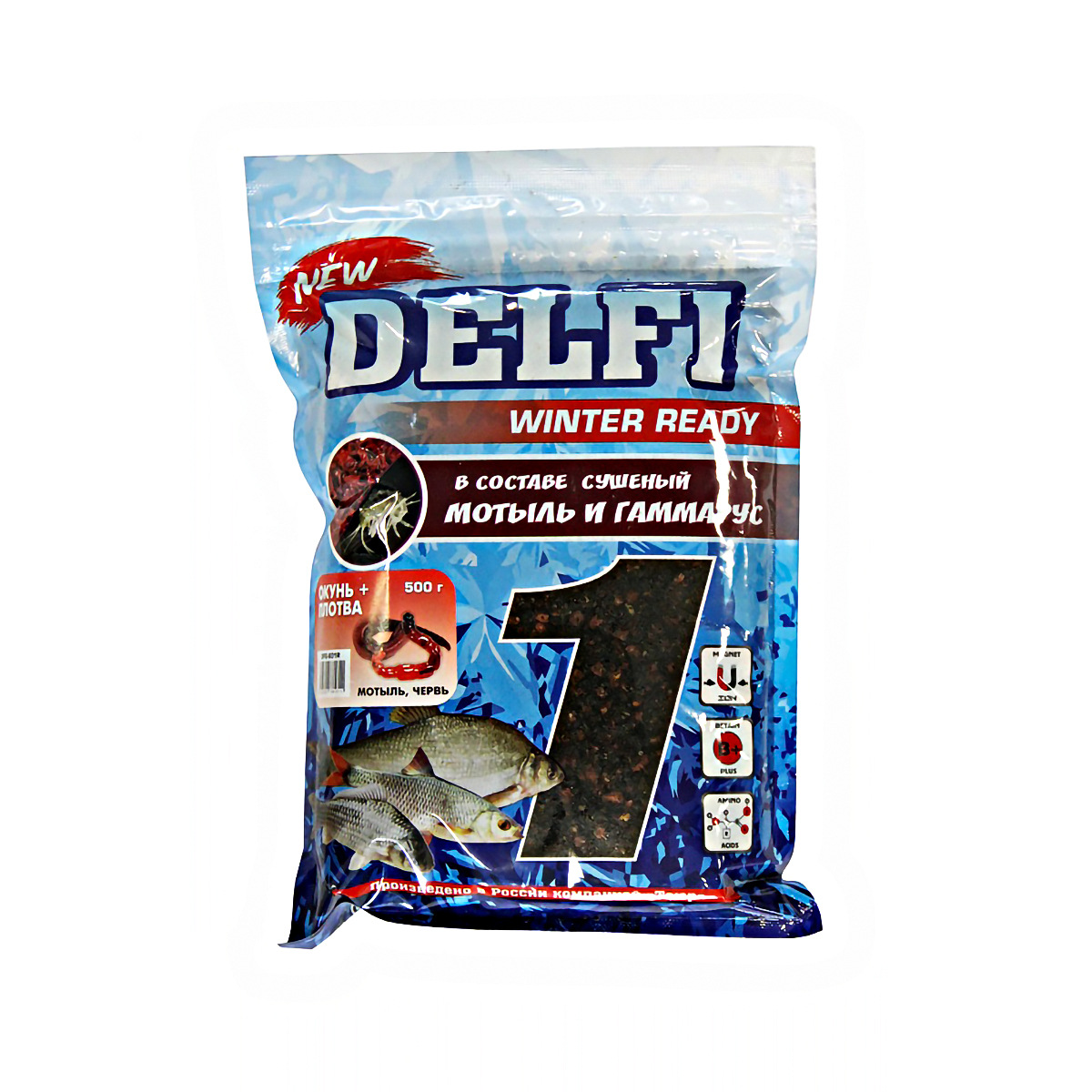 Прикормка зимняя Delfi Ice Ready увлажненная 500гр Окунь-Плотва, Мотыль-Червь, черная