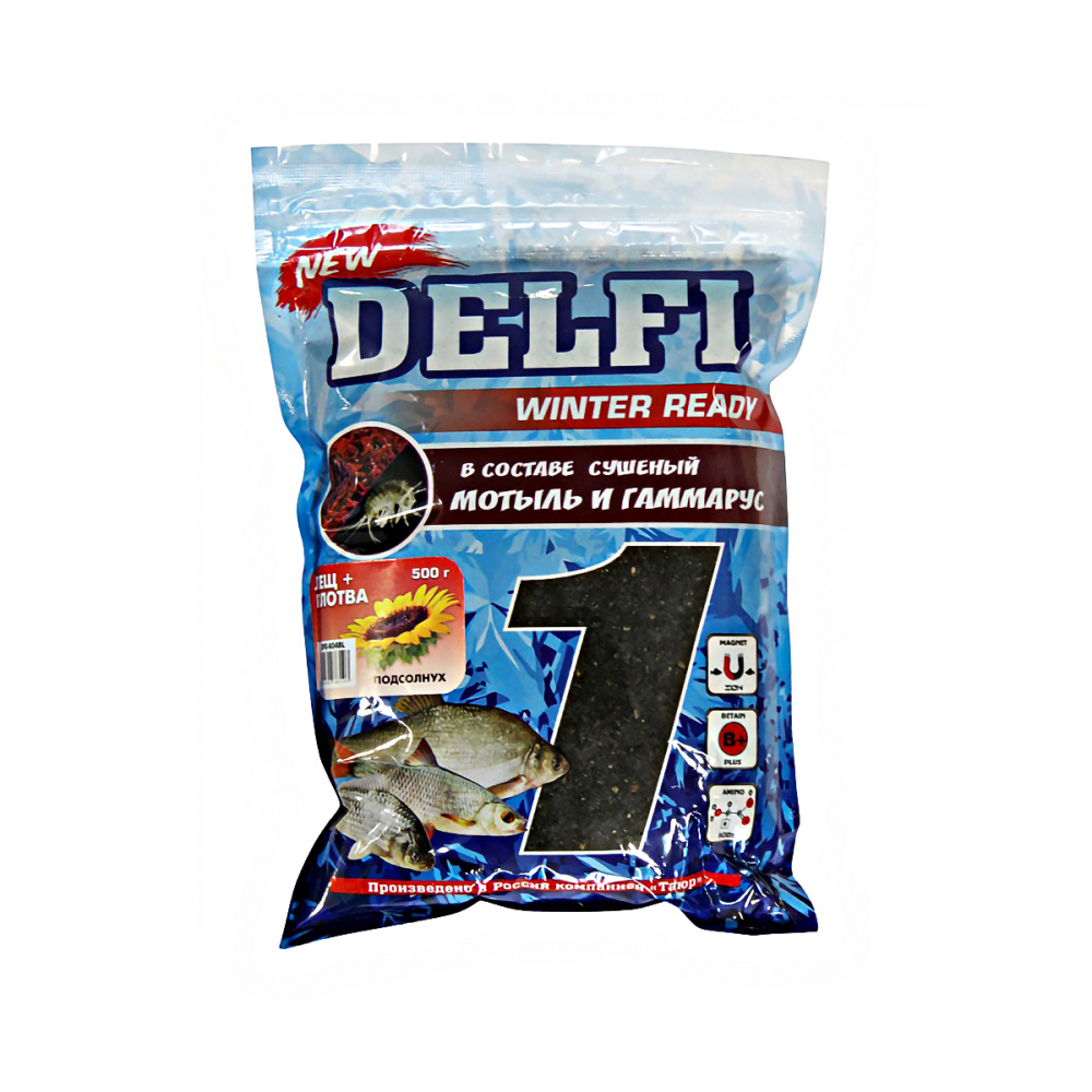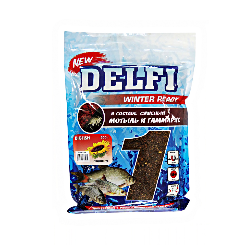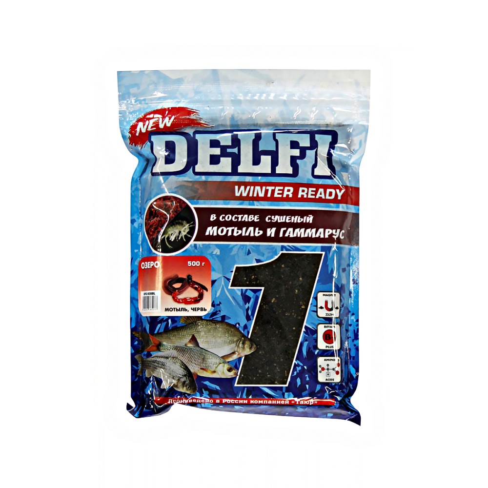 Прикормка зимняя Delfi Ice Ready увлажненная 500гр Креветка, с блестками