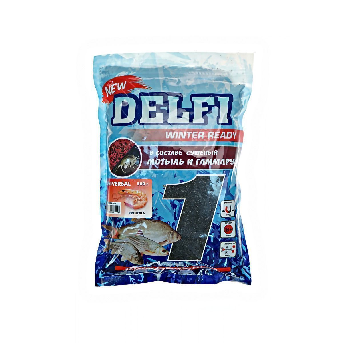 Прикормка зимняя Delfi Ice Ready увлажненная 500гр Креветка, с блестками