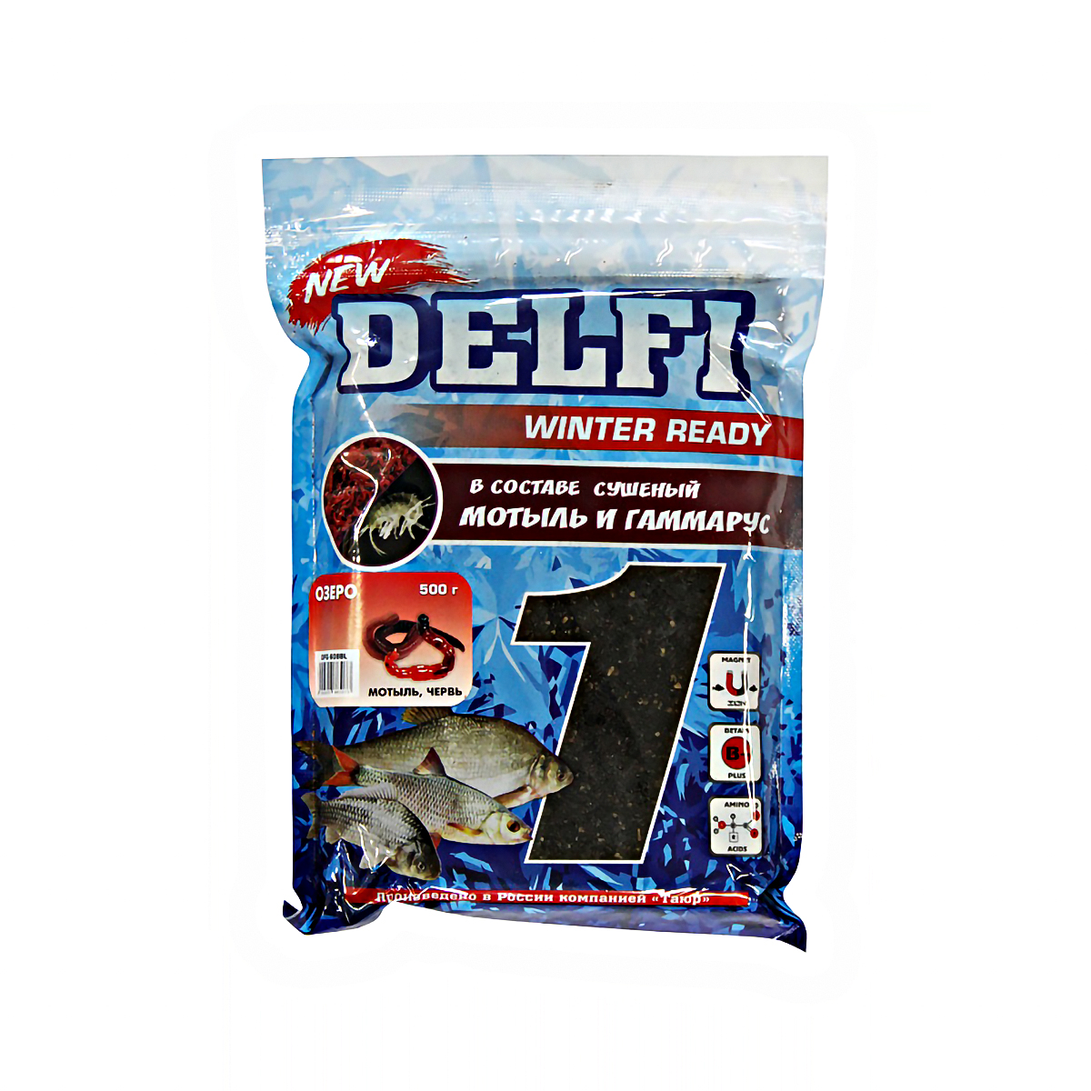 Прикормка зимняя Delfi Ice Ready увлажненная 500гр Озеро, Мотыль-Червь, черная