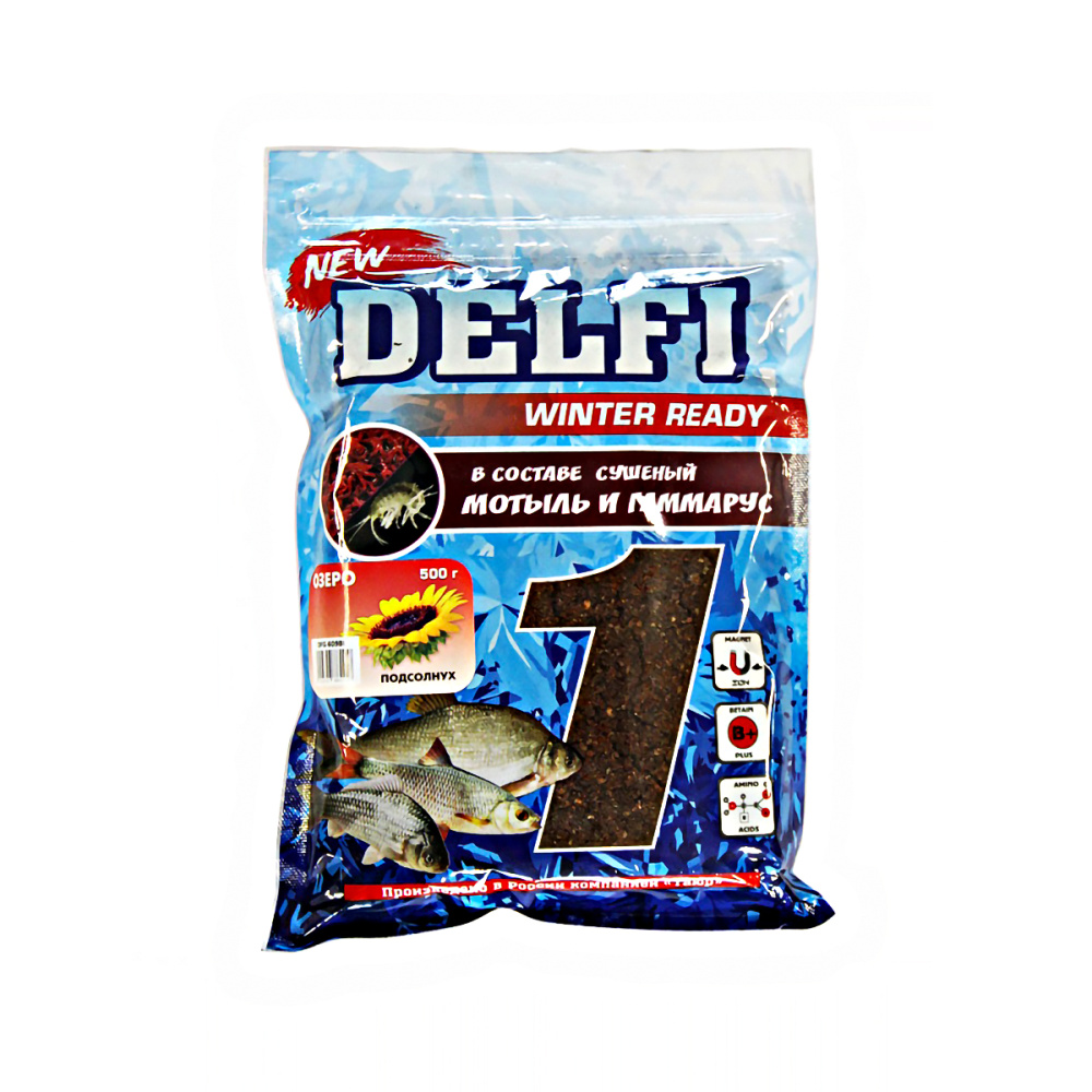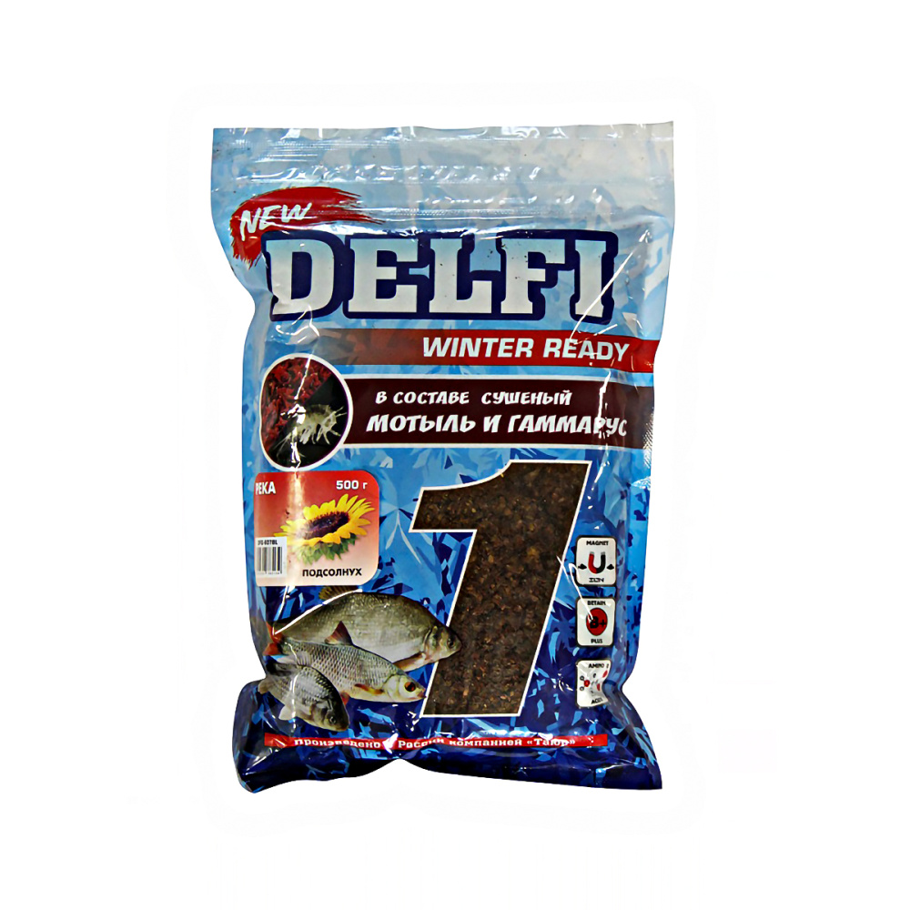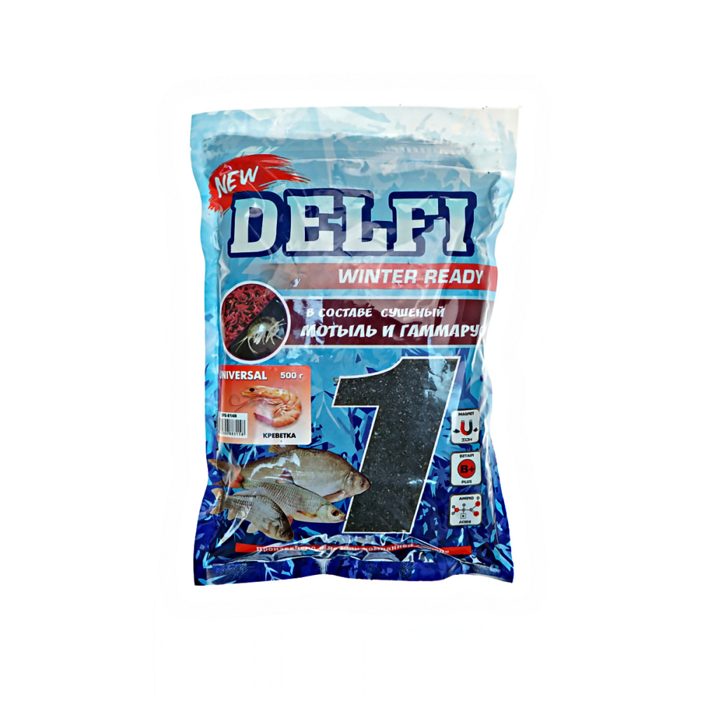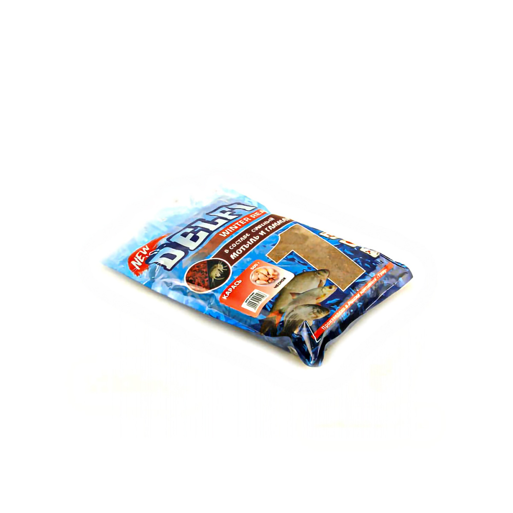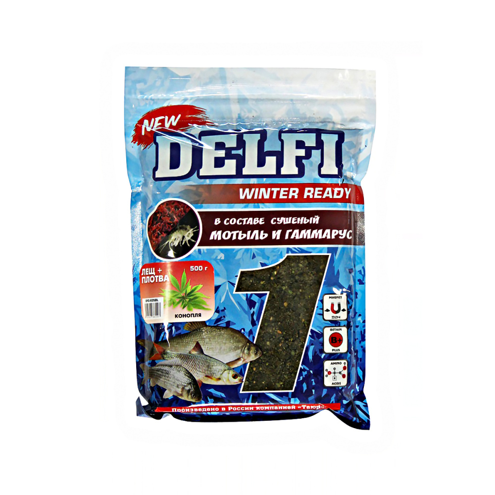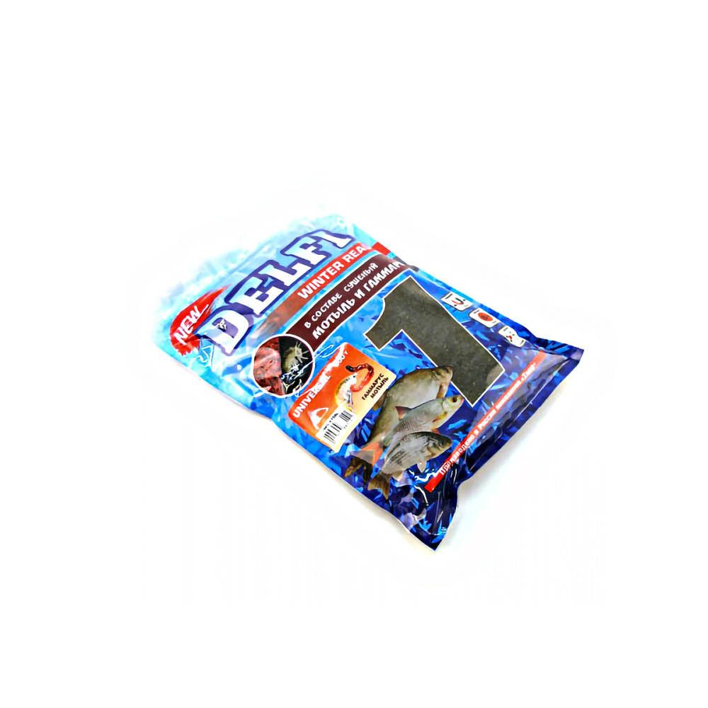 Прикормка зимняя Delfi Ice Ready увлажненная 500гр Карась, Мотыль-Червь, черная