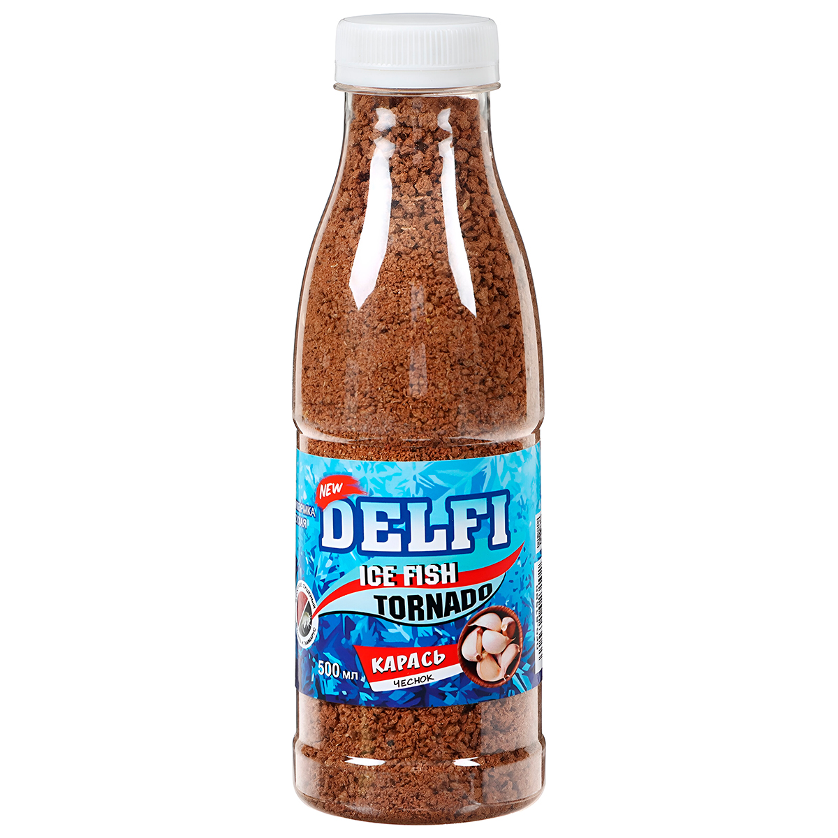 Прикормка зимняя Delfi Ice Fish Tornado 500мл Карась, Чеснок, коричневая