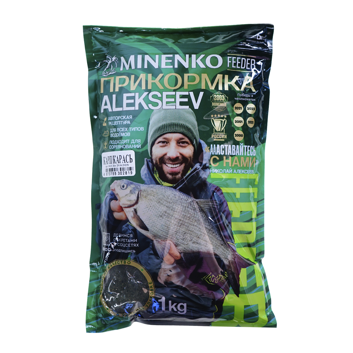 Прикормка разработана совместно с Николаем Алексеевым. Известный рыболов, путешественник, телеведущий и блогер, многократный победитель областных чемпионатов и кубков по фидеру, поплавку, спиннингу и мормышке, а также бронзовый призёр за звание «Лучшего рыболова» 2021 и 2022 года по версии Профессиональной лиги рыболовов. «Уже более 30 лет я ловлю рыбу по всей Россию и не только. За эти годы накопился огромный опыт, который я вложил в серию прикормок Feeder, и своими знаниями делюсь с Вами в каждой пачке!