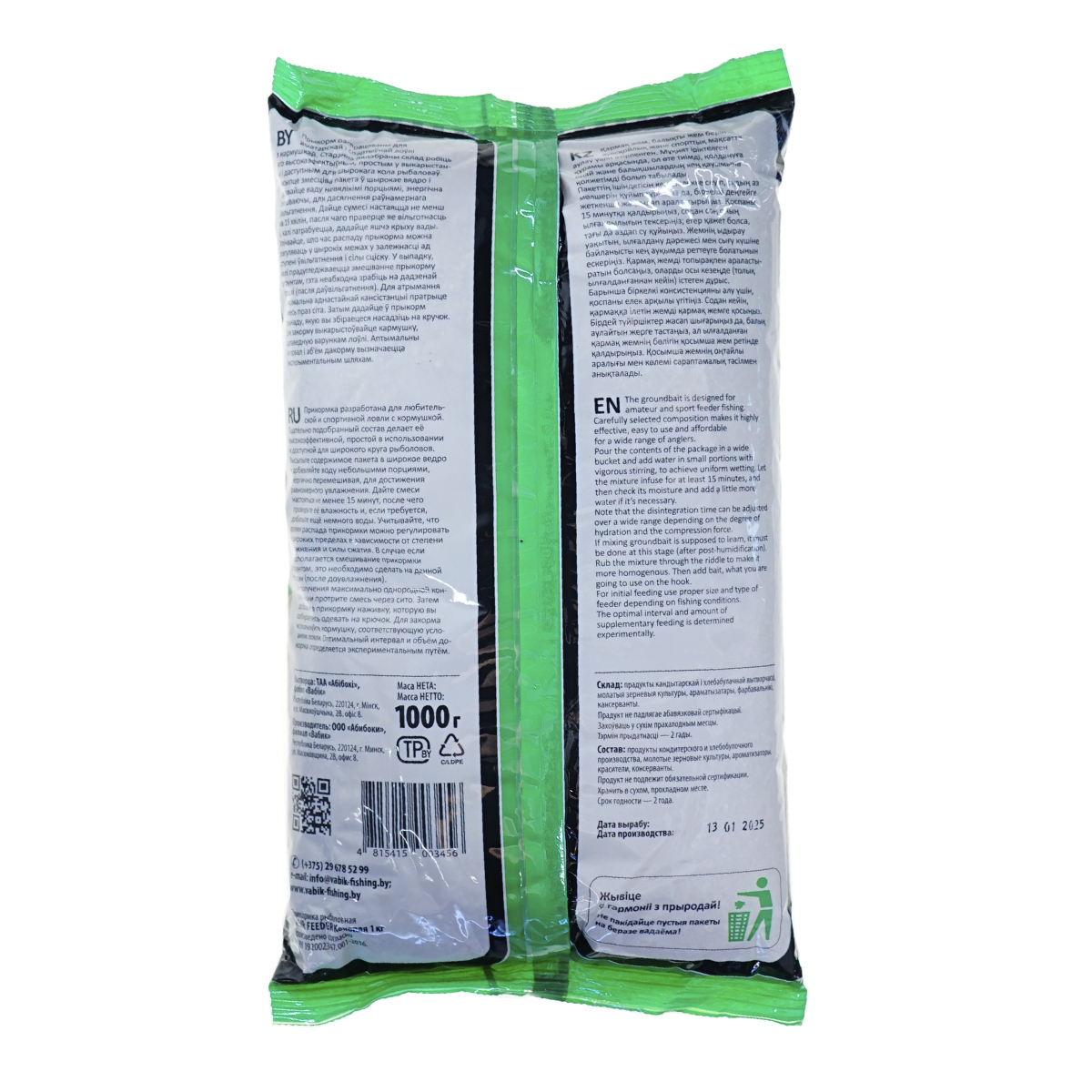 Высыпьте содержимое пакета в широкое ведро и добавляйте воду небольшими порциями, энергично помешивая, для достижения равномерного увлажнения. Дайте смеси настояться не менее 15 минут, после чего проверьте её влажность и, если требуется, добавьте еще немного воды. Учитывайте, что время распада прикормки можно регулировать в широких пределах в зависимости от степени увлажнения и силы сжатия. В случае если предполагается смешивание прикормки с грунтом, это необходимо сделать на данной стадии (после доувлажнения).