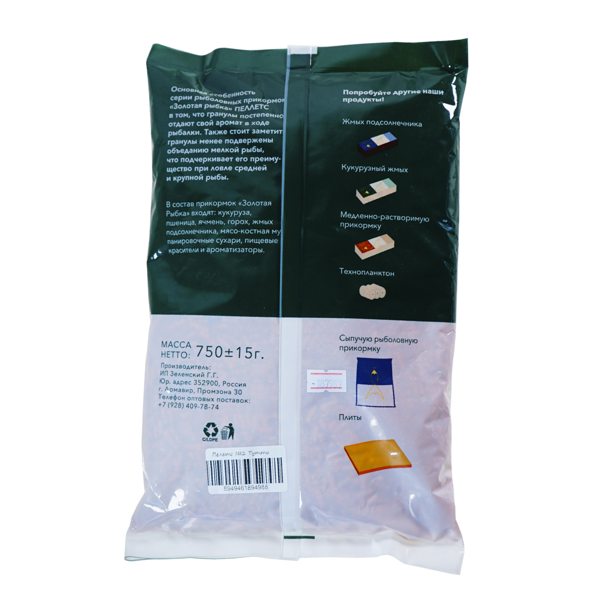 Пеллетс Золотая Рыбка 2мм 750гр Тутти-Фрутти