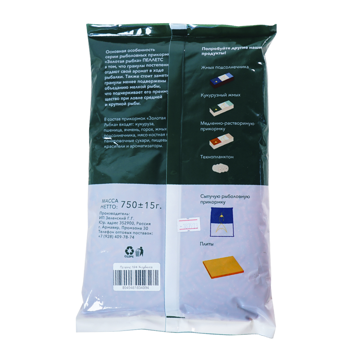 Пеллетс Золотая Рыбка 4мм 750гр Клубника