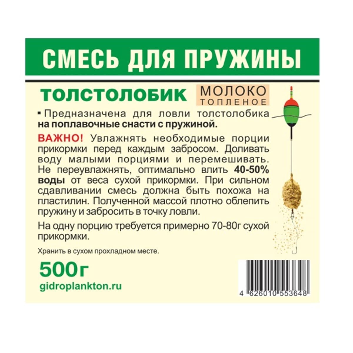 Прикормку смешать с водой до состояния крутого теста или пластилина. Доливать воду малыми порциями, оптимально влить 70% воды от веса сухой прикормки. Полученную массу промять и максимально платно забить в пружину. Увлажнять не всю проикормку сразу, а только необходимые порции для каждого заброса.