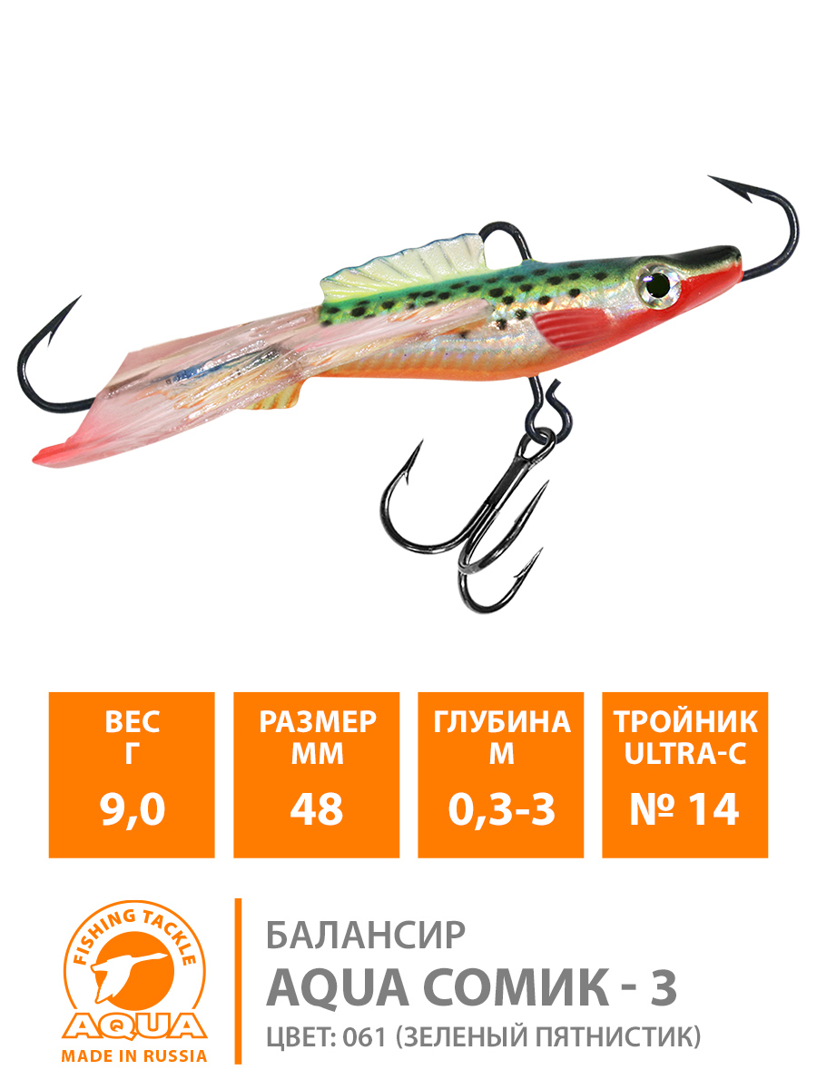 Балансир Aqua Сомик-3 48мм 9гр цвет 061 (пятнисто-синий)