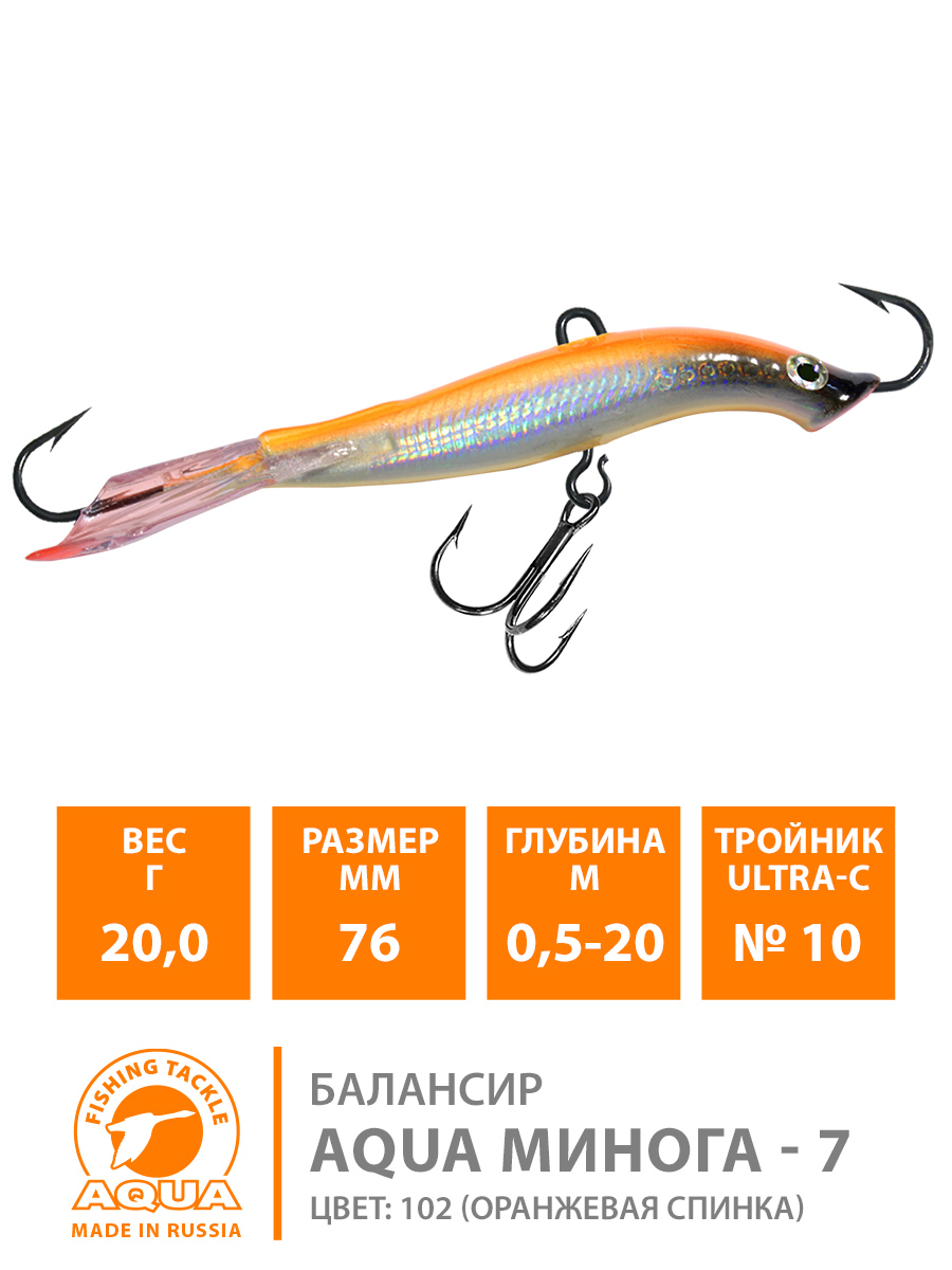 Балансир Aqua Минога-7 76мм 20гр цвет 102 (оранжевая спинка)