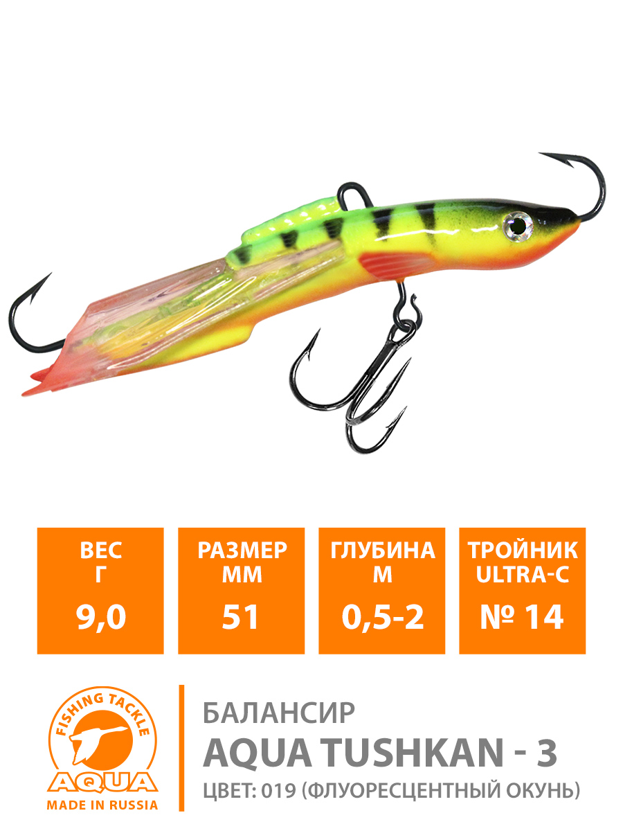 Балансир Aqua Tushkan-3 51мм 9гр цвет 019 (флуоресцентный окунь)