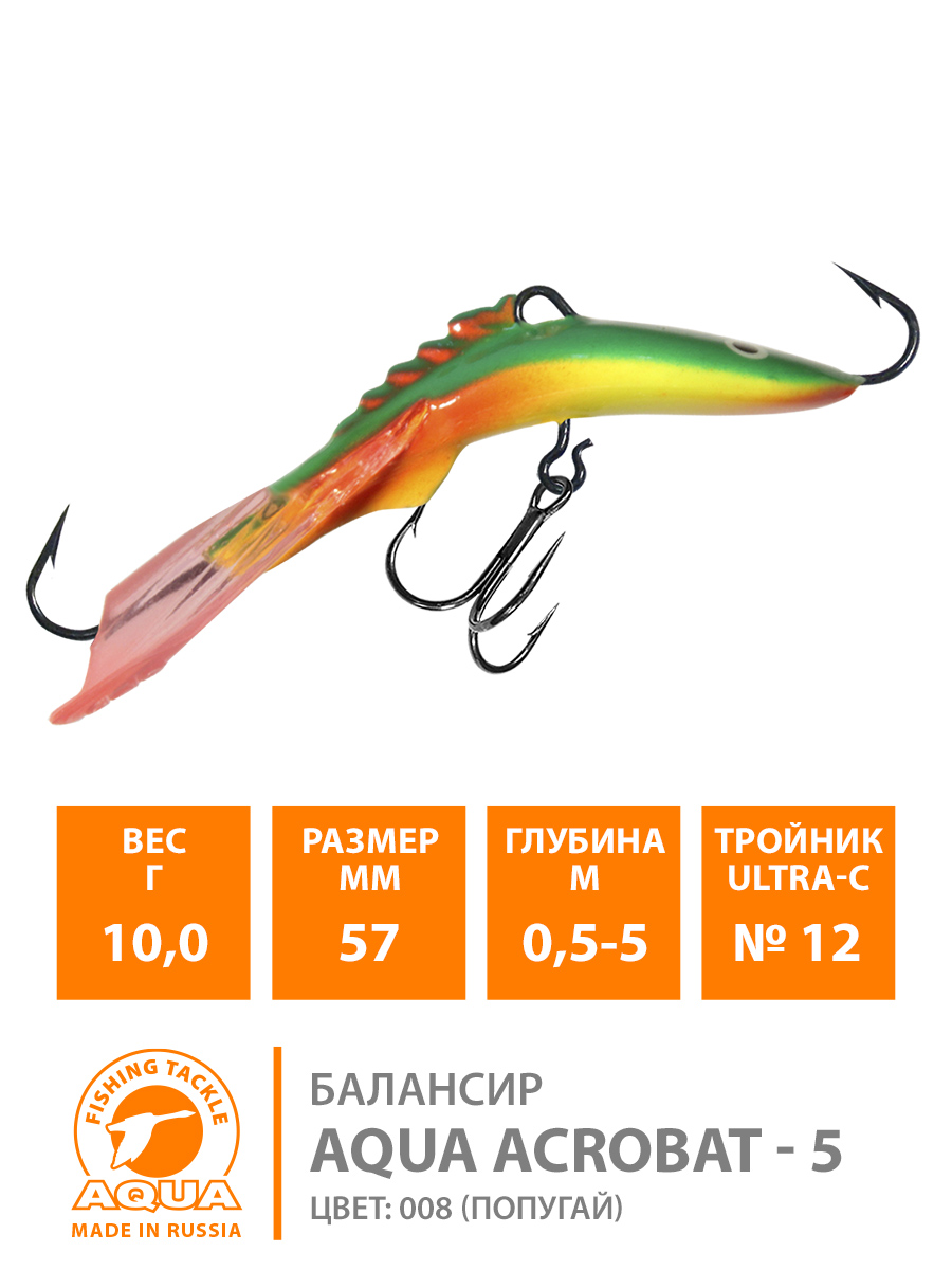 Балансир Aqua Acrobat-5 57мм 10гр цвет 008 (попугай)