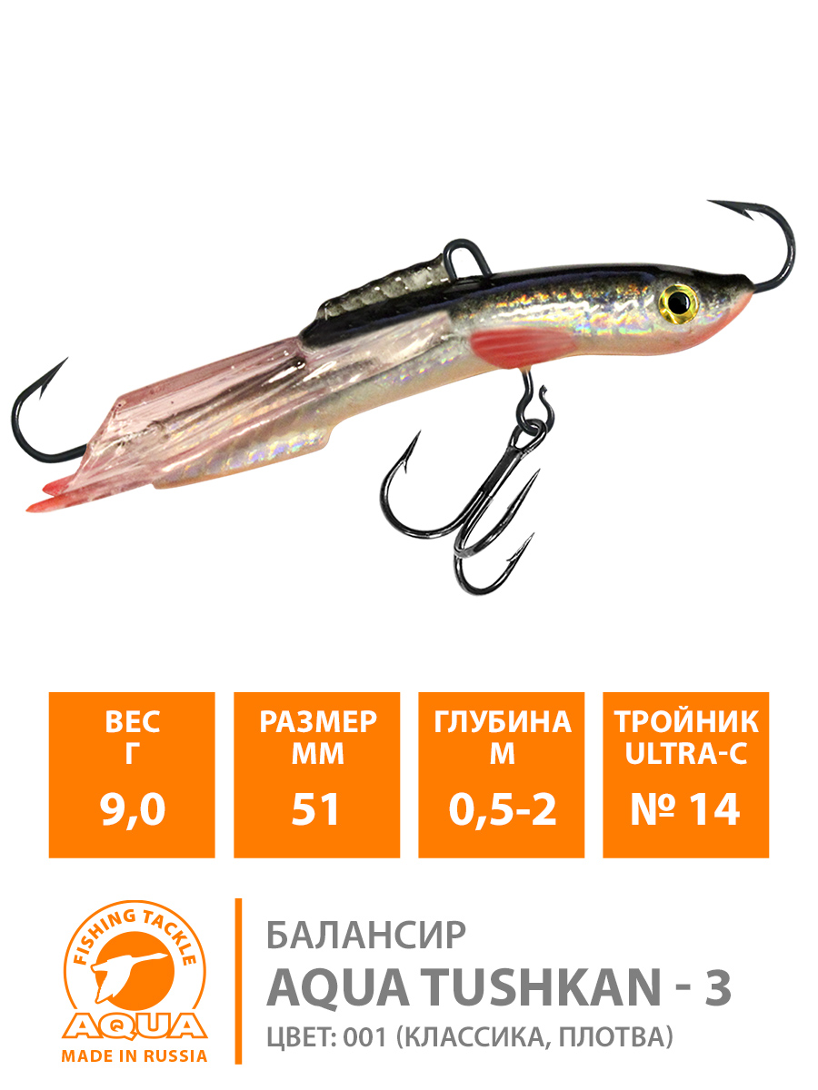 Балансир Aqua Tushkan-3 51мм 9гр цвет 001 (классика, плотва)