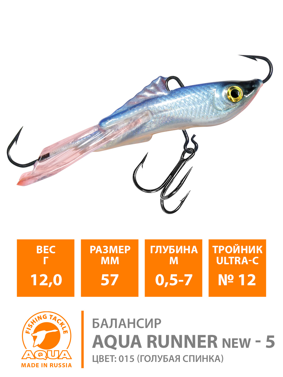 Балансир Aqua Runner New-5 57мм 12гр цвет 015 (голубая спинка)