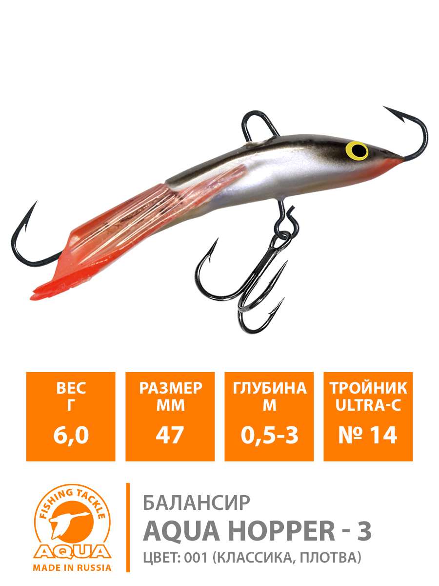 Балансир Aqua Hopper 47мм 6гр цвет 001 (классика, плотва)