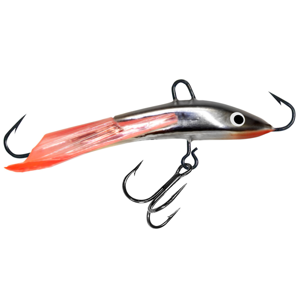 Исключительная прыгучесть по вертикали и плавный долгий ход к нулевой точке, делает его игру неотразимой для берегового окуня и щуки - травянки. А если он еще в исполнении зеркальная металлизация, то рыба реагирует на него за добрые двадцать метров.